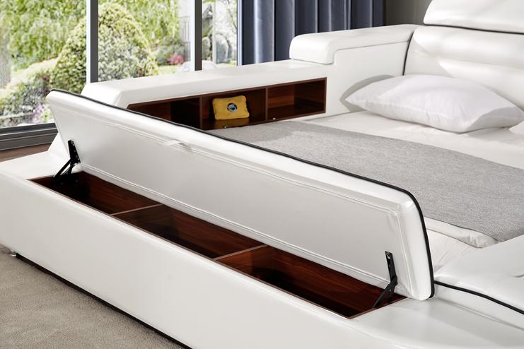 Camas de hotel de 180x200 cm con estante multifunción y diseño USB. Cama de diseño xxl grande de cuero.