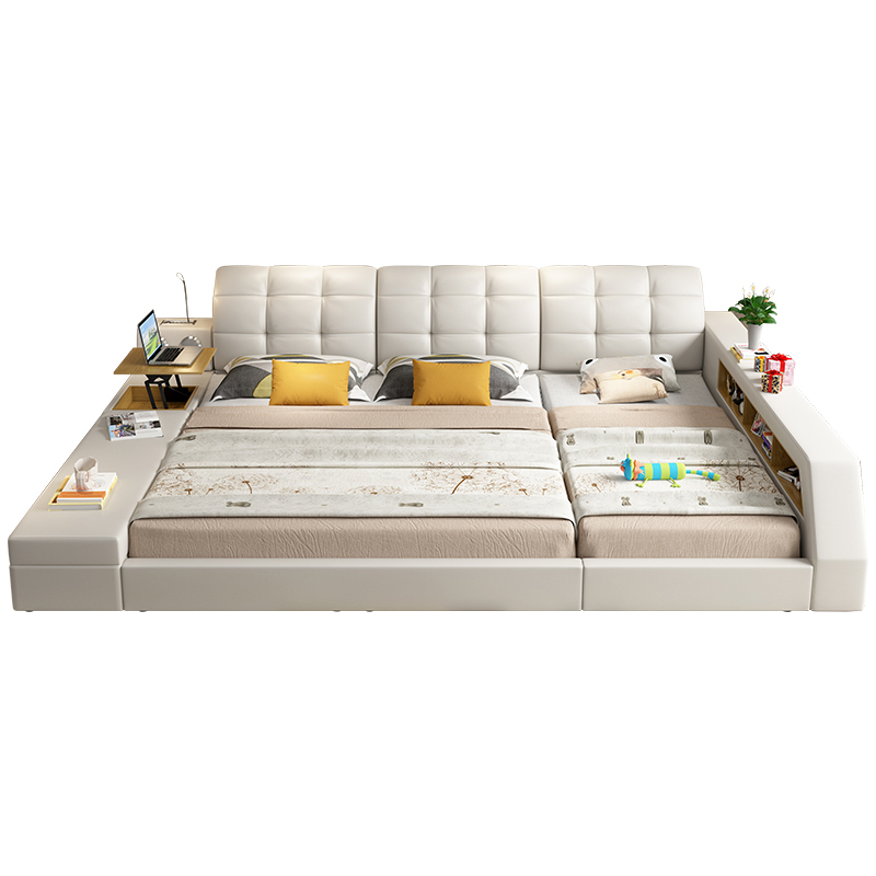 Diseño de camas de cuero para hotel con doble estante de 180x200 multifuncional.