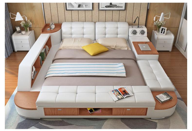 Camas Modernas Hotel Multifunción Cama Doble de Lujo Diseño de Cuero