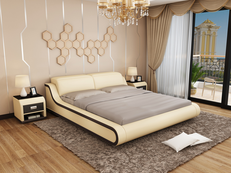 Cama de agua doble de hotel con USB, cama de cuero completa con cabecero acolchado, cama de agua.