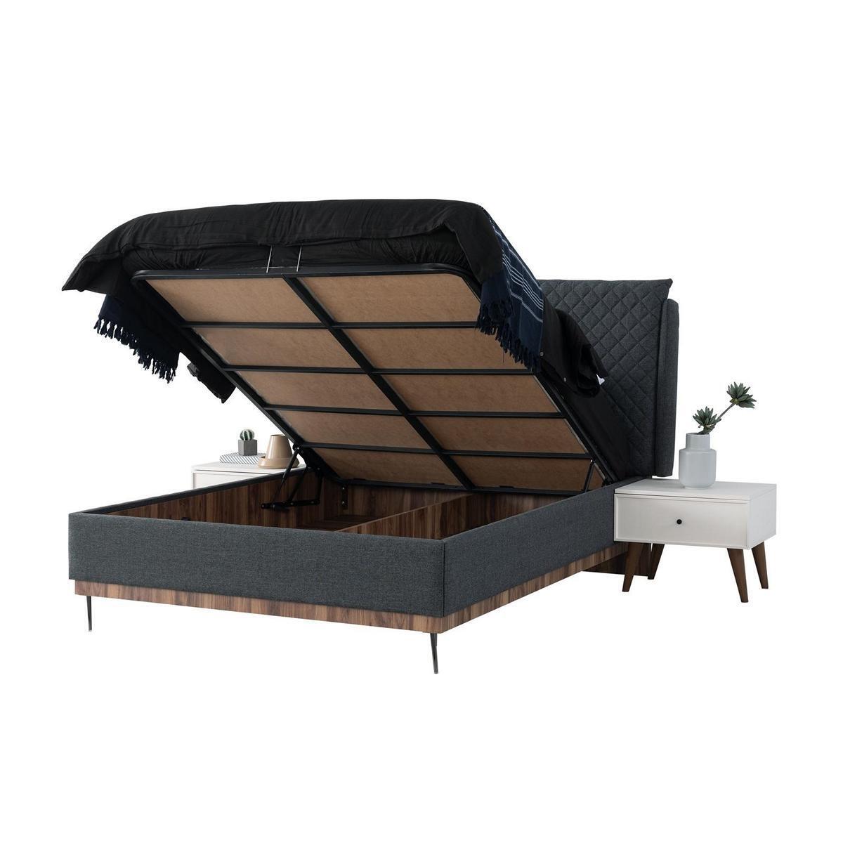 Juego de dormitorio blanco y negro, cama de diseño, tocador, cómoda, 6 piezas.