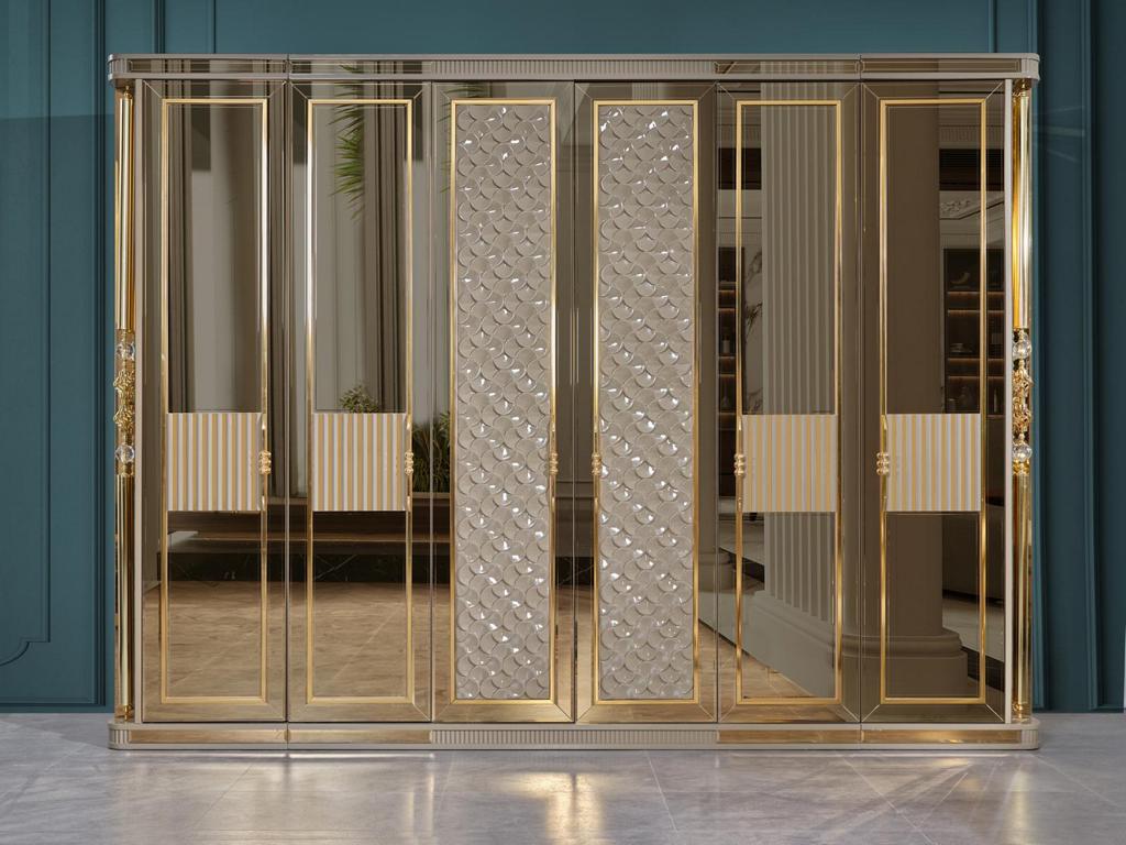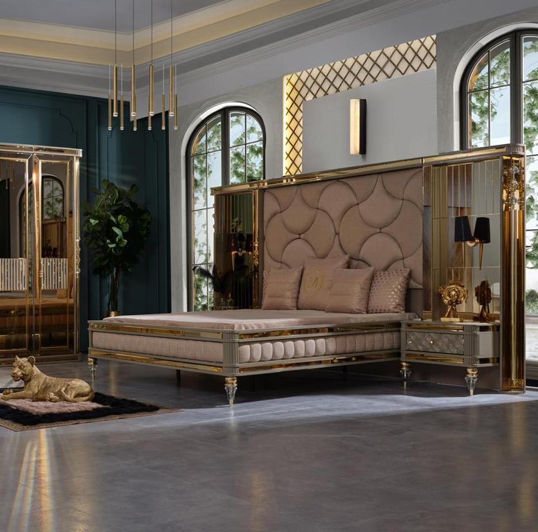 El armario incluido, con unas dimensiones aproximadas de 303 x 65 x 225 cm, brinda amplio espacio de almacenaje para organizar la ropa y accesorios de forma eficiente. Fabricado en madera, tela y metal, este conjunto ofrece durabilidad y estilo en cada detalle. El color mostrado en la imagen agrega un toque de elegancia a cualquier decoración interior. Ya sea para crear un ambiente de descanso sofisticado o para disfrutar de un verdadero lujo en el hogar, este conjunto de dormitorio es la opción perfecta para satisfacer las necesidades de confort y estilo.