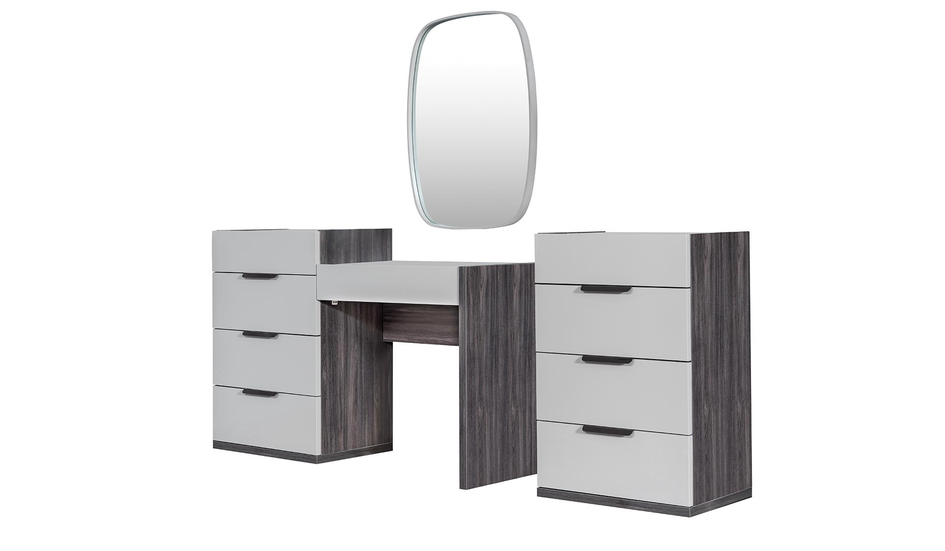 Conjunto de muebles para dormitorio completo Cama 2 mesitas de noche tocador espejo 5 piezas Nuevo