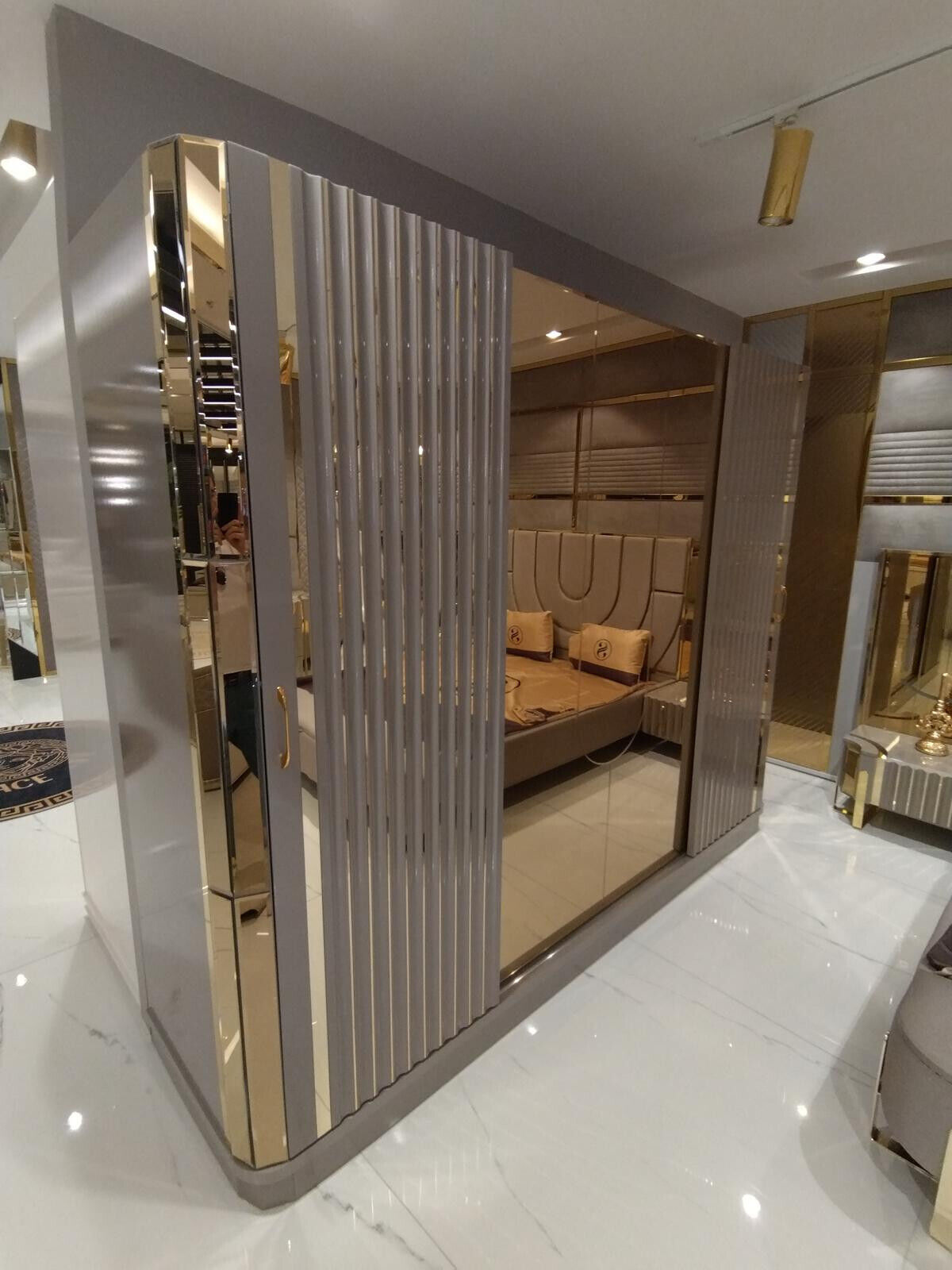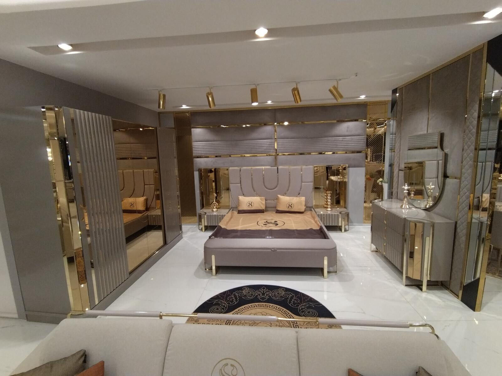 Set de dormitorio de lujo. Cama completa, 2 mesitas de noche, armario. Juego de 4 piezas.