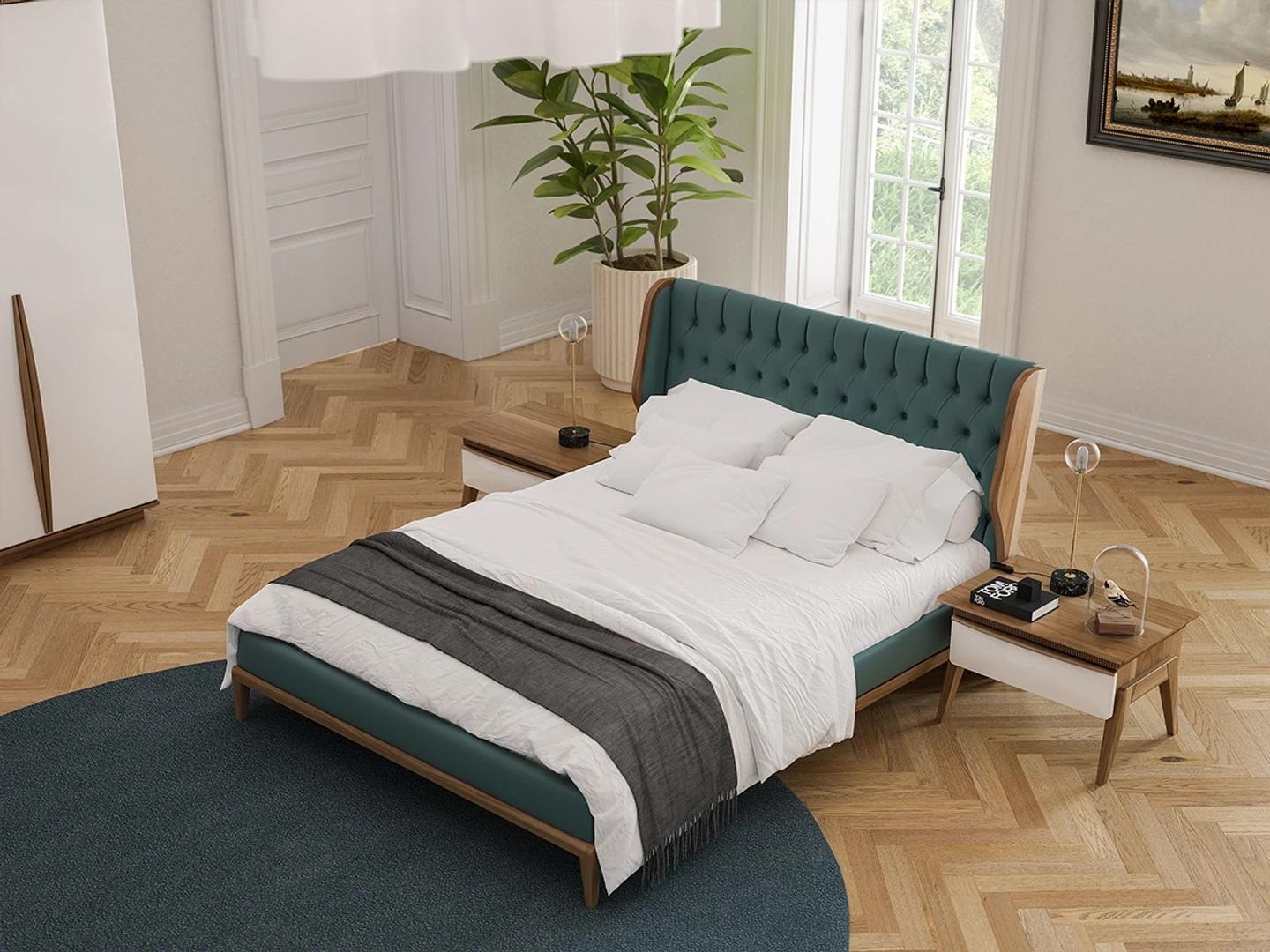El dormitorio completo Cama 2x Mesitas de noche Moderno Armario Banco Nuevo es la solución perfecta para aquellos que buscan un conjunto de muebles moderno y funcional para su habitación. Con una cama de aproximadamente 171 x 228 x 113 cm y una superficie de descanso de 160 x 200 cm, este conjunto ofrece comodidad y estilo en un mismo lugar. Además, incluye dos mesitas de noche de aproximadamente 71 x 50 x 47 cm cada una, un armario de 268 x 70 x 225 cm y un banco de 159 x 47 x 37 cm, todos elaborados en madera de alta calidad.