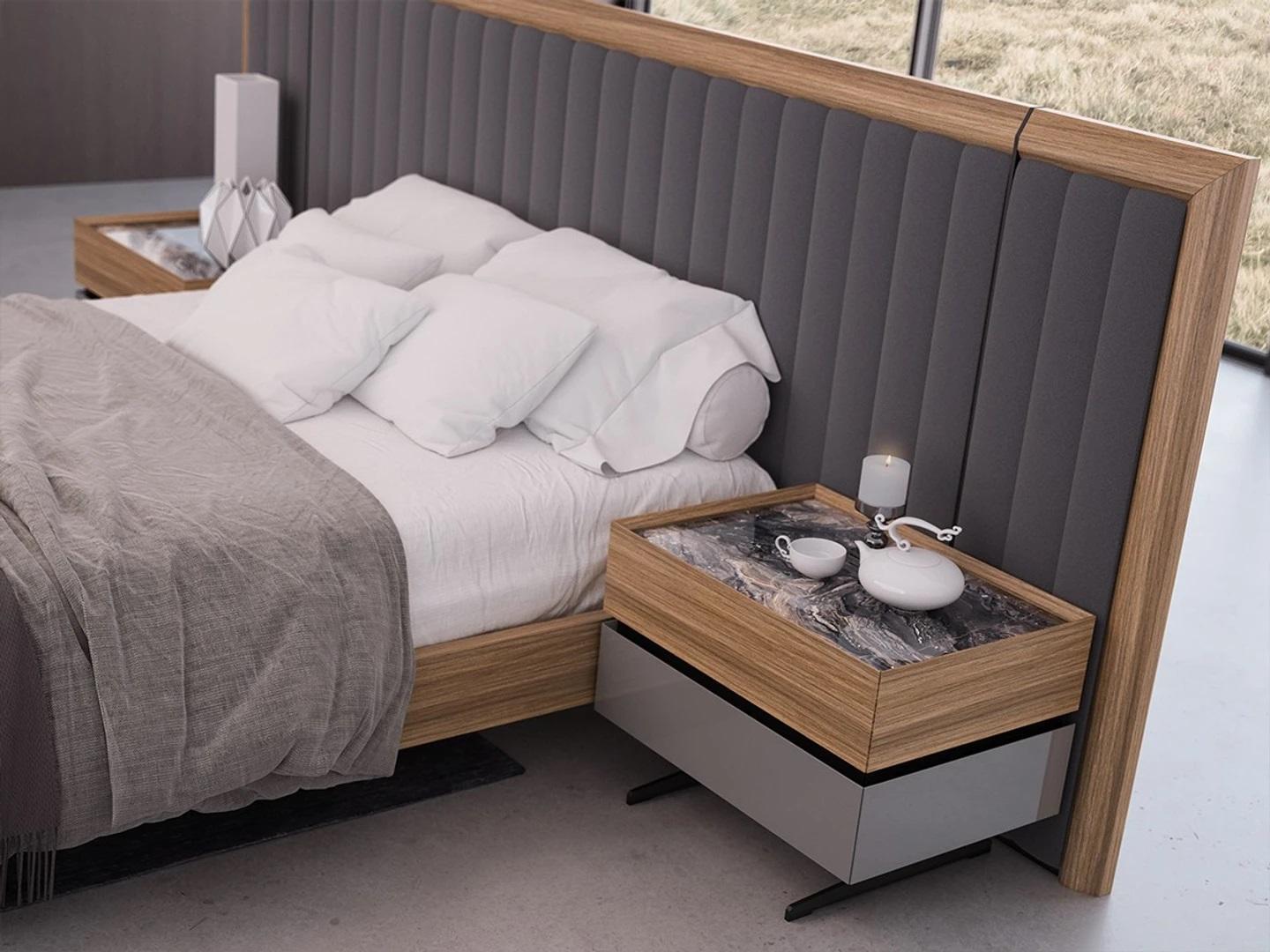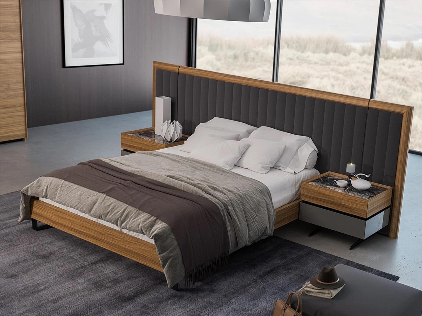 Juego de dormitorio 3 piezas, cama doble moderna, 2 mesitas de noche, diseño de madera completo