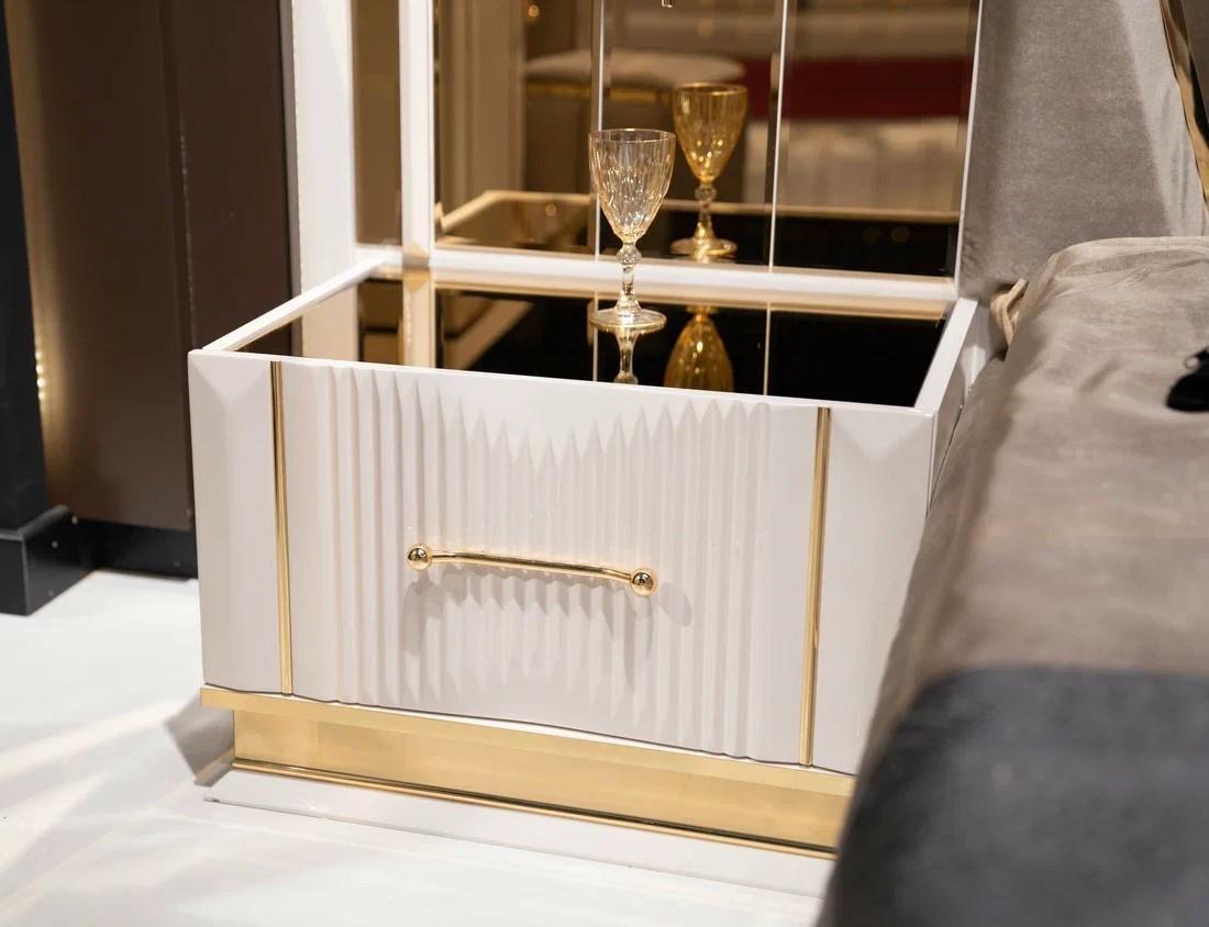Este juego de dormitorio de lujo nuevo de diseño moderno es ideal para darle un toque elegante y contemporáneo a tu habitación. El set incluye una cama amplia con dimensiones de 315 x 240 x 135 cm y dos mesitas de noche que miden aproximadamente 60 x 45 x 40 cm. La combinación de colores y materiales hacen de este conjunto un elemento destacado en cualquier espacio. La cama y las mesitas de noche están fabricadas en madera de alta calidad con detalles en textil, lo que garantiza durabilidad y estilo.