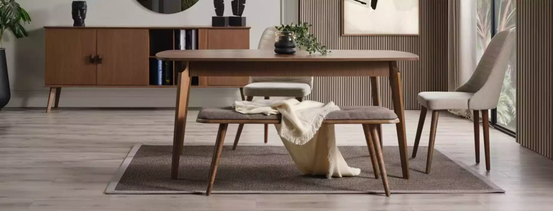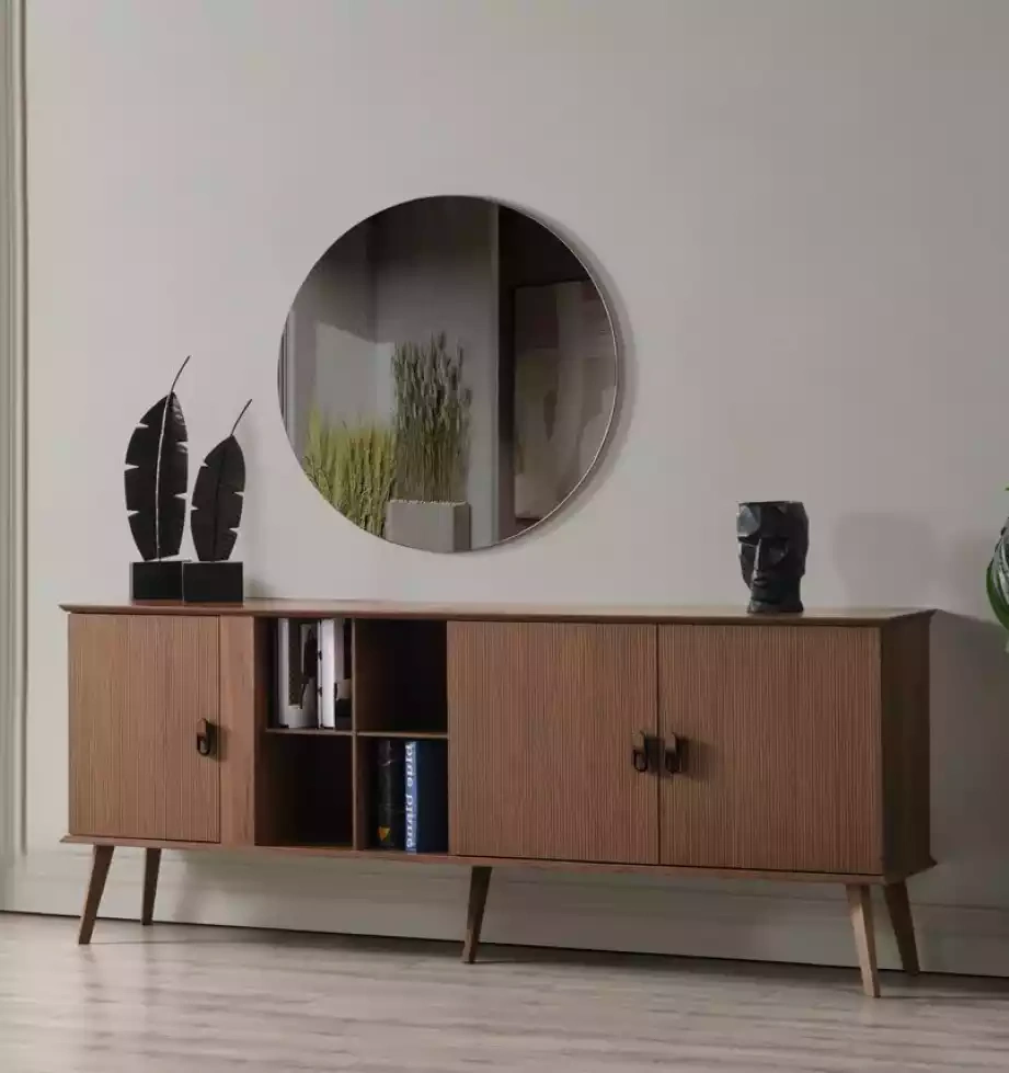 El conjunto de mesa de comedor de madera con aparador y espejo, acompañado por cuatro sillas, es la expresión sublime de la elegancia contemporánea. Su acabado en marrón profundo resalta la riqueza de la madera, creando un ambiente cálido y acogedor. La mesa, con su diseño refinado, invita a compartir momentos memorables, mientras que el aparador y el espejo añaden un toque de sofisticación y amplitud al espacio. Cada silla ha sido meticulosamente diseñada para ofrecer comodidad sin sacrificar el estilo, convirtiéndose en el complemento perfecto para cenas formales o reuniones íntimas. Este conjunto, fruto de dos décadas de dedicación a la excelencia en muebles de lujo, es una elección que refleja un estilo de vida exclusivo y un compromiso con la calidad.
