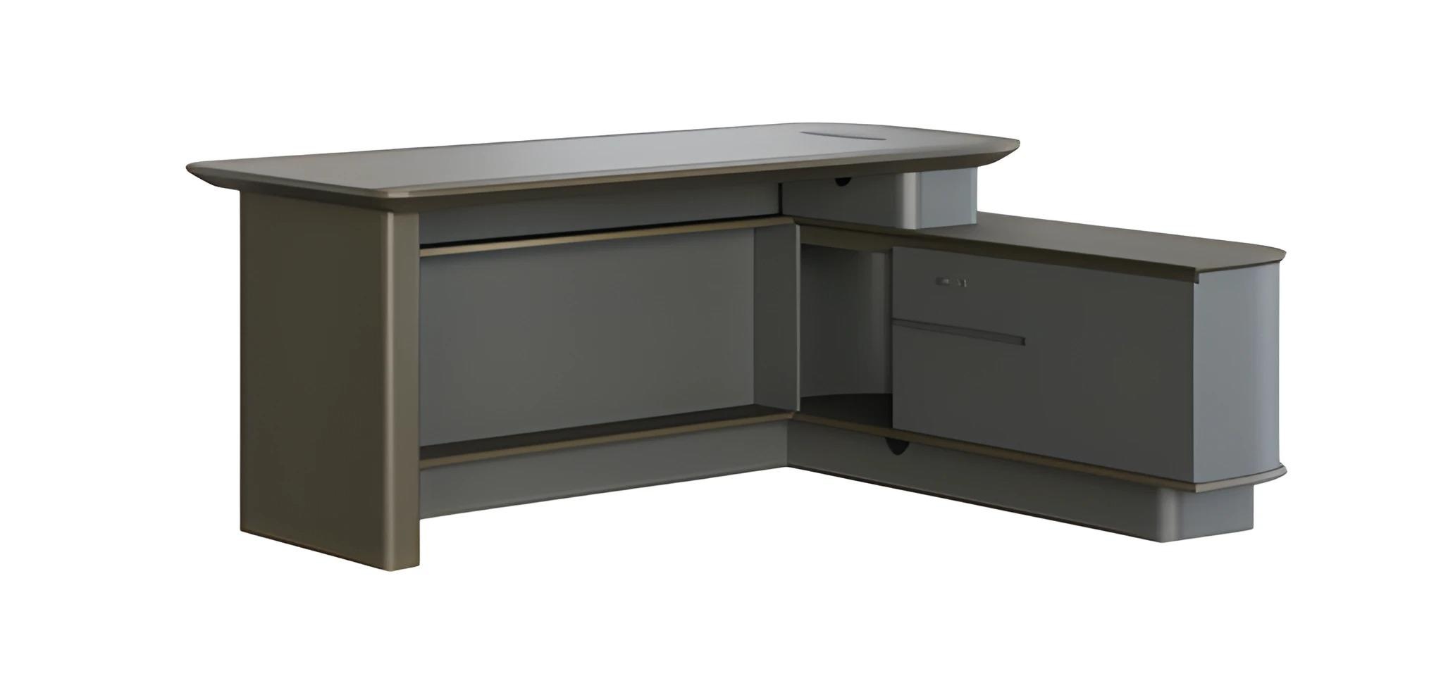 El moderno escritorio de esquina gris redefine la elegancia contemporánea, fusionando diseño sofisticado con funcionalidad excepcional. Su acabado en un sutil tono gris aporta un aire de serenidad, mientras que los elegantes canales para cables garantizan un entorno ordenado y minimalista, ideal para el profesional exigente. Con un ingenioso sistema de almacenamiento, cada elemento encuentra su lugar, potenciando la organización sin sacrificar el estilo. Este escritorio no solo es un mueble, es una declaración de un estilo de vida exclusivo, perfecto para quienes buscan transformar su espacio de trabajo en un refugio de lujo. Con 20 años de experiencia en mobiliario de alta gama, este diseño es la elección ideal para un hogar que aspire a lo excepcional.