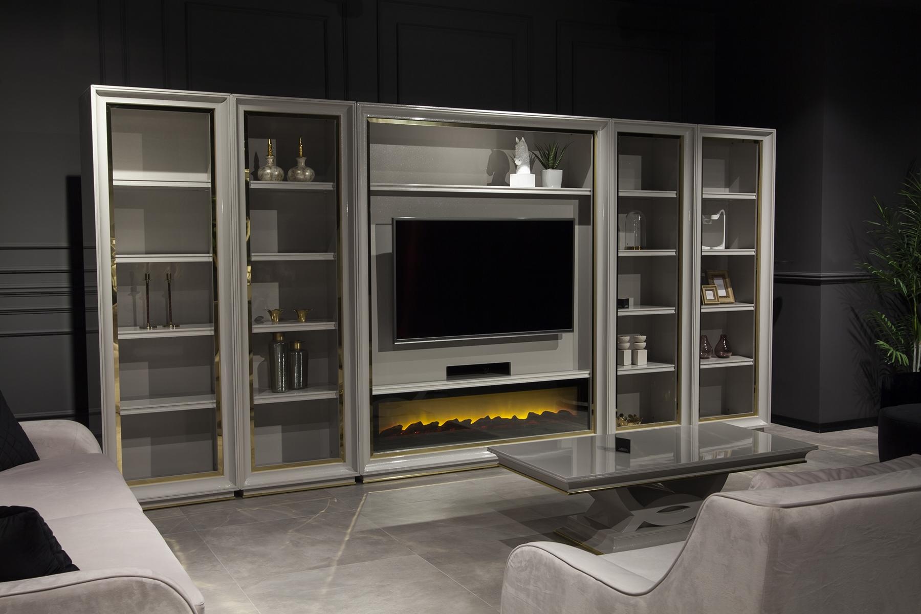 Armario XXL montado en la pared para la sala de estar mueble diseño chimenea | xlmuebles.es