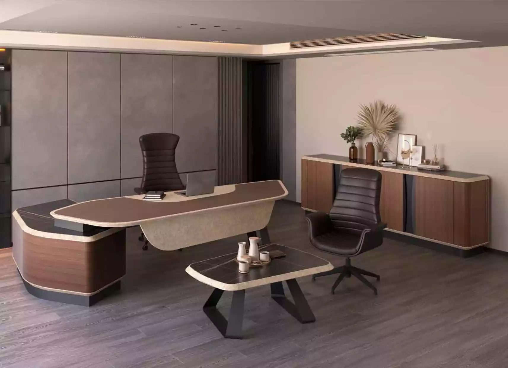 Moderno conjunto de oficina de lujo, muebles, escritorio de esquina, aparador, madera maciza.