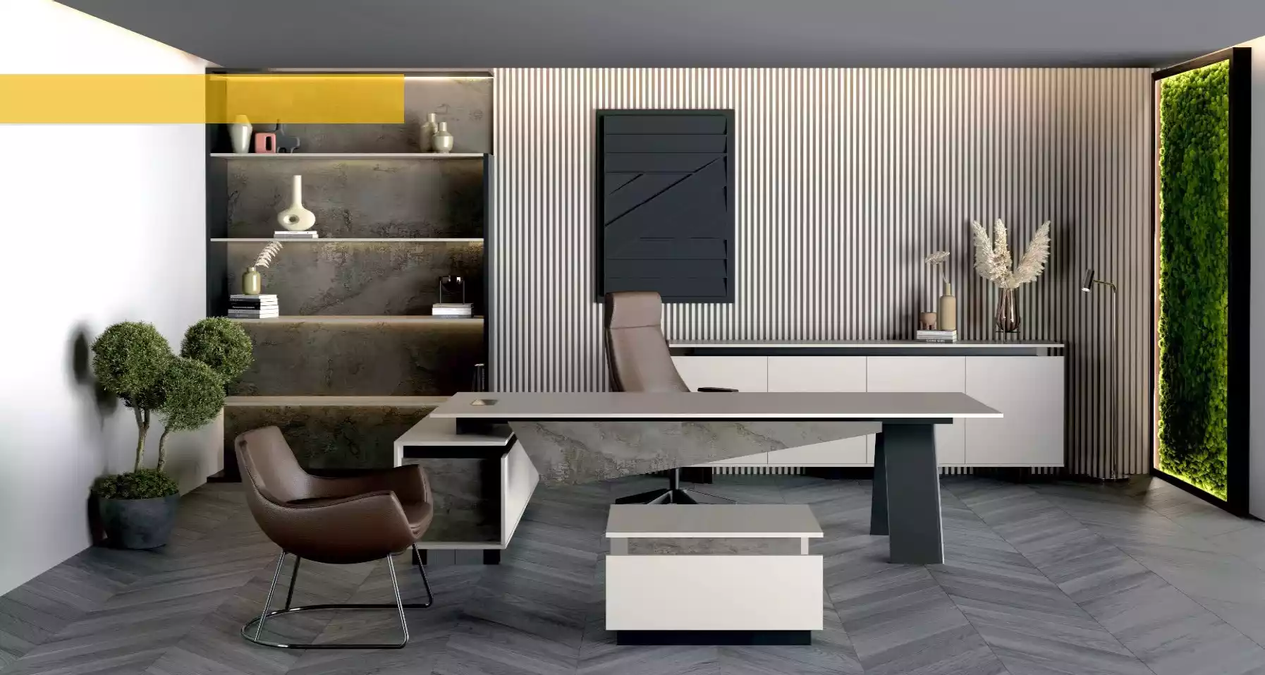 Muebles de oficina gris: escritorio, aparador, muebles de oficina modernos de madera