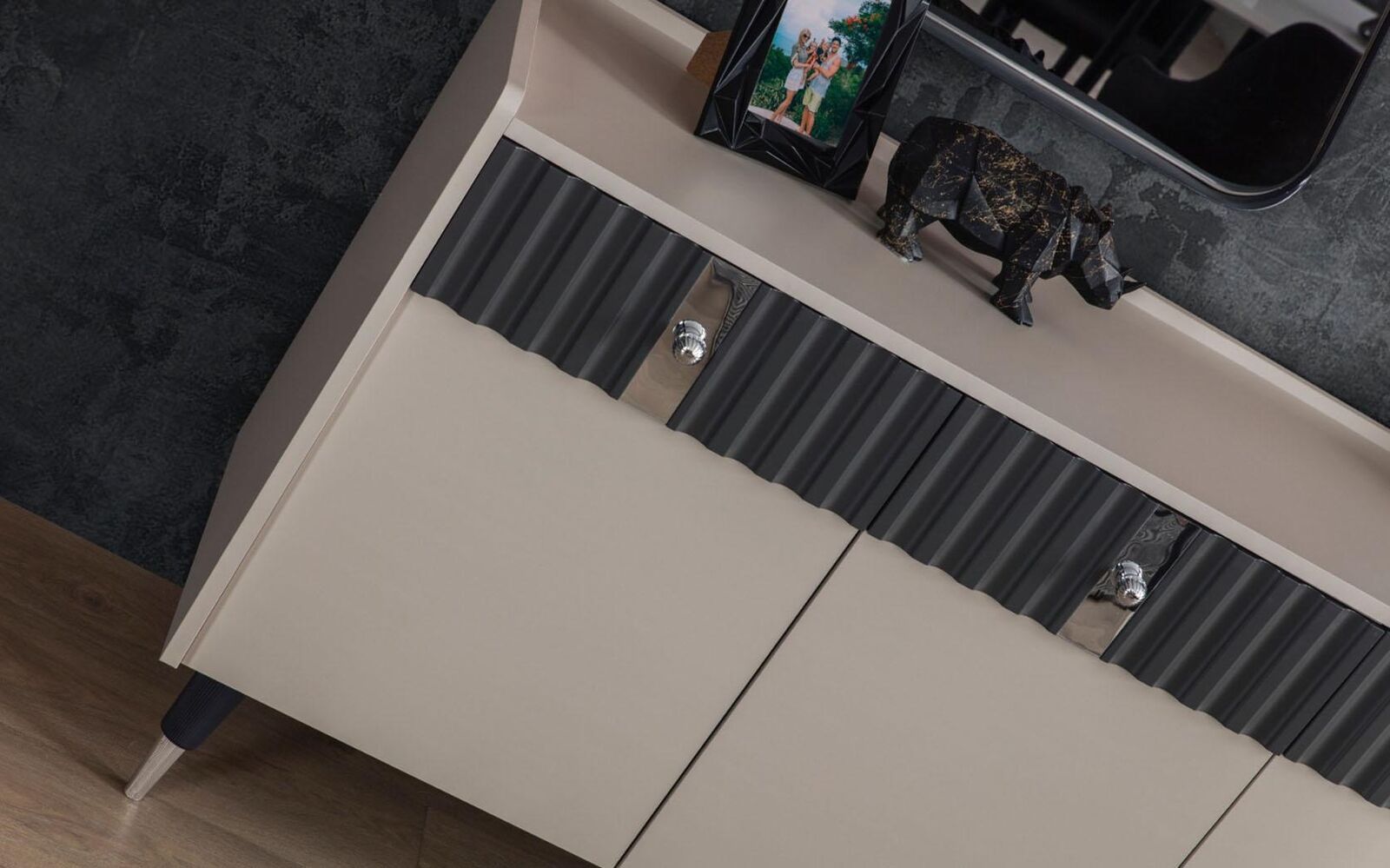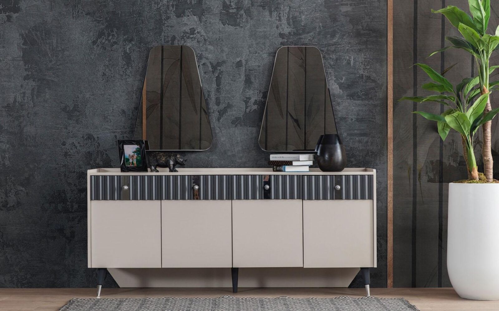 Conjunto completo de diseñador de aparador beige con 2 espejos - conjunto de 3 piezas.