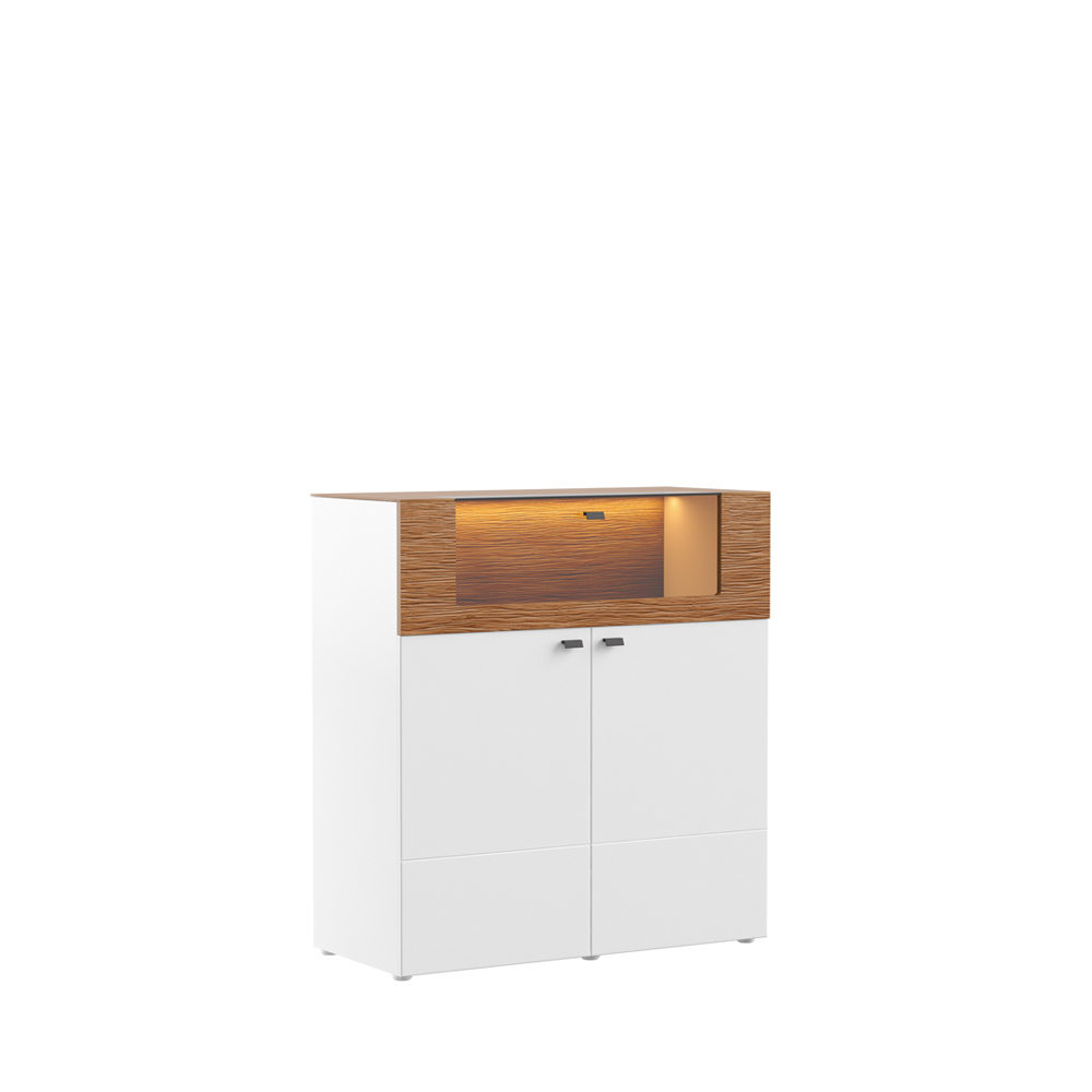 La Cómoda de roble Vitrina es una pieza de mobiliario elegante y funcional que se destaca por su diseño moderno y materiales de alta calidad. Con un ancho de 111 cm, profundidad de 40 cm y altura de 121 cm, esta cómoda ofrece un amplio espacio de almacenamiento para tus pertenencias. El cuerpo de madera maciza lacada garantiza durabilidad y resistencia, mientras que la parte trasera y los estantes de MDF chapado y lacado añaden un toque de sofisticación.