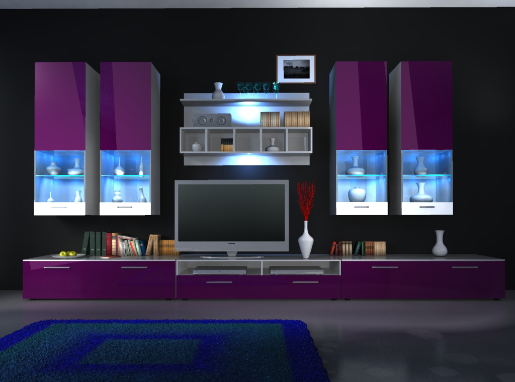 Mueble de pared para salón, armario de pared brillante con iluminación LED "opción de color" diseño nuevo