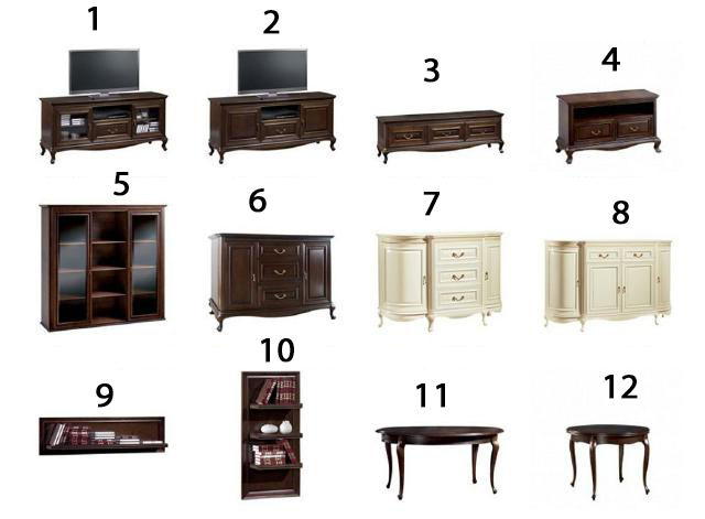 Sala de estar clásica Muebles de diseñador finos Vitrina Mesa de TV Cómoda Estilo italiano