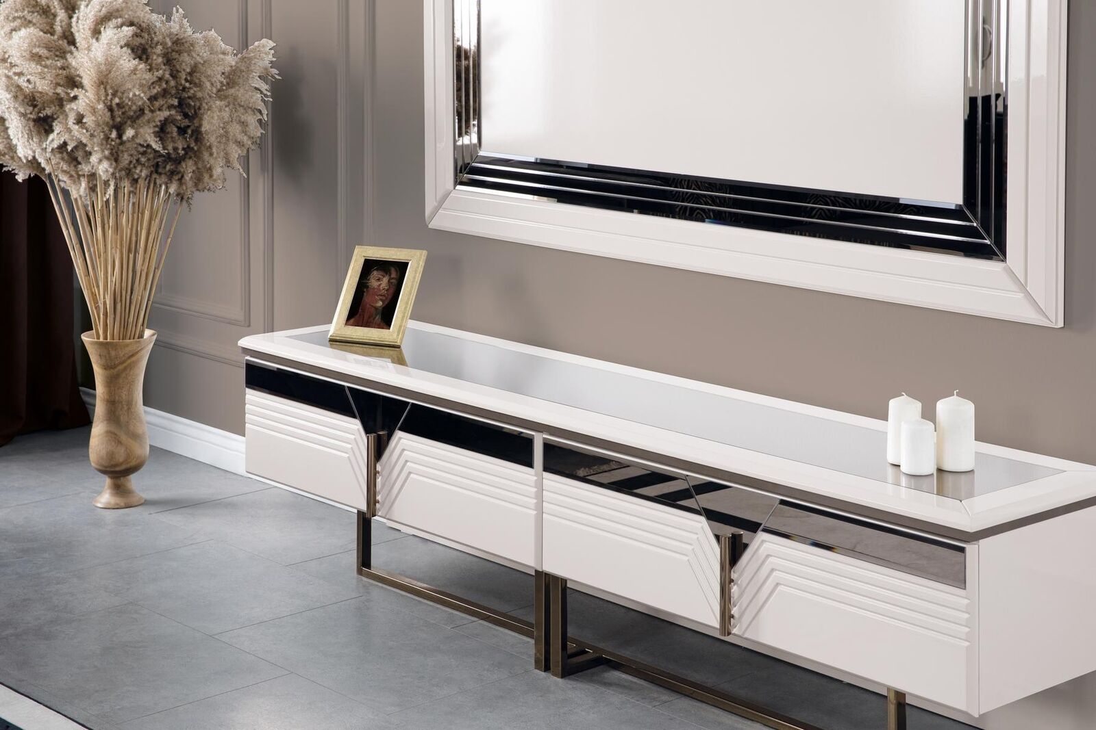 Mueble de televisión, soporte de TV, panel de pared, mueble bajo RTV blanco de madera, cómoda moderna.