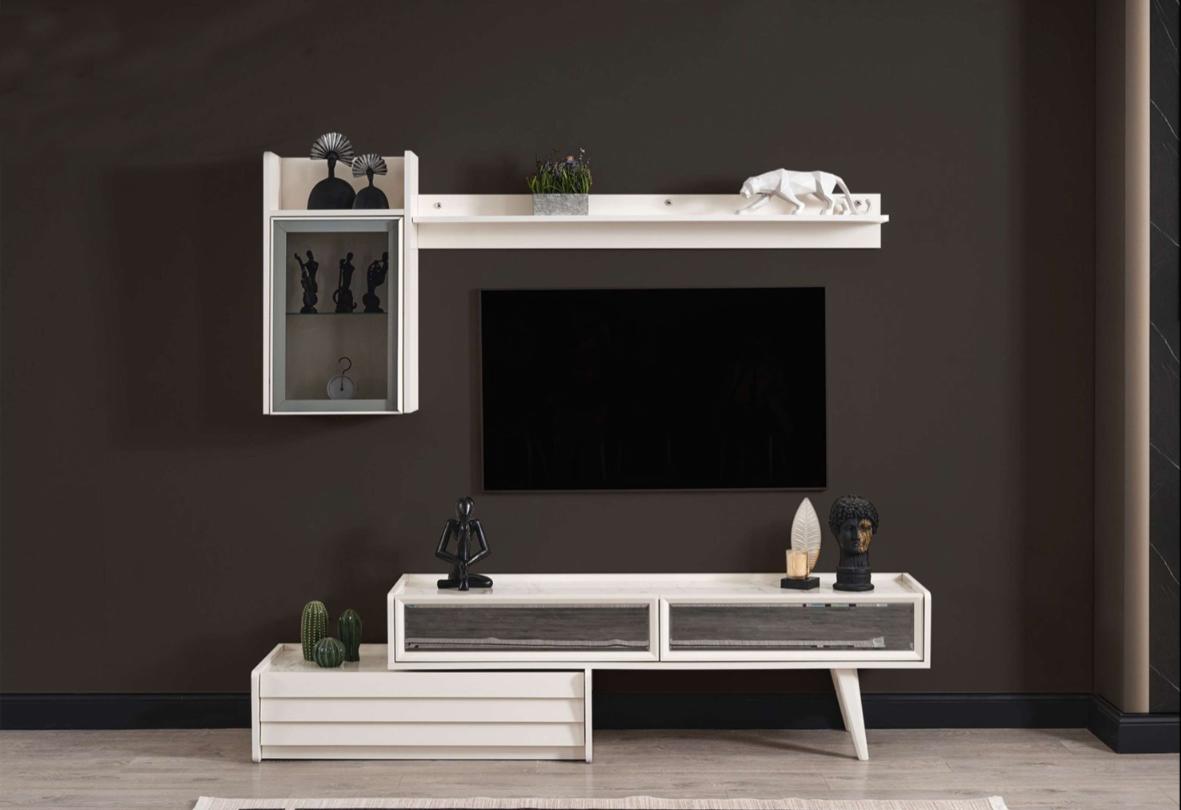 Confeccionado en madera blanca, este set de muebles combina funcionalidad y elegancia en un solo producto. Su diseño versátil y moderno se adapta a diversos estilos de decoración, desde minimalista hasta contemporáneo. Cautiva a tus invitados con la belleza y calidad de estos muebles, creando un ambiente acogedor y sofisticado en tu hogar. Disfruta de la armonía y organización que brinda este conjunto, convirtiéndolo en el centro de atención de tu sala de estar.