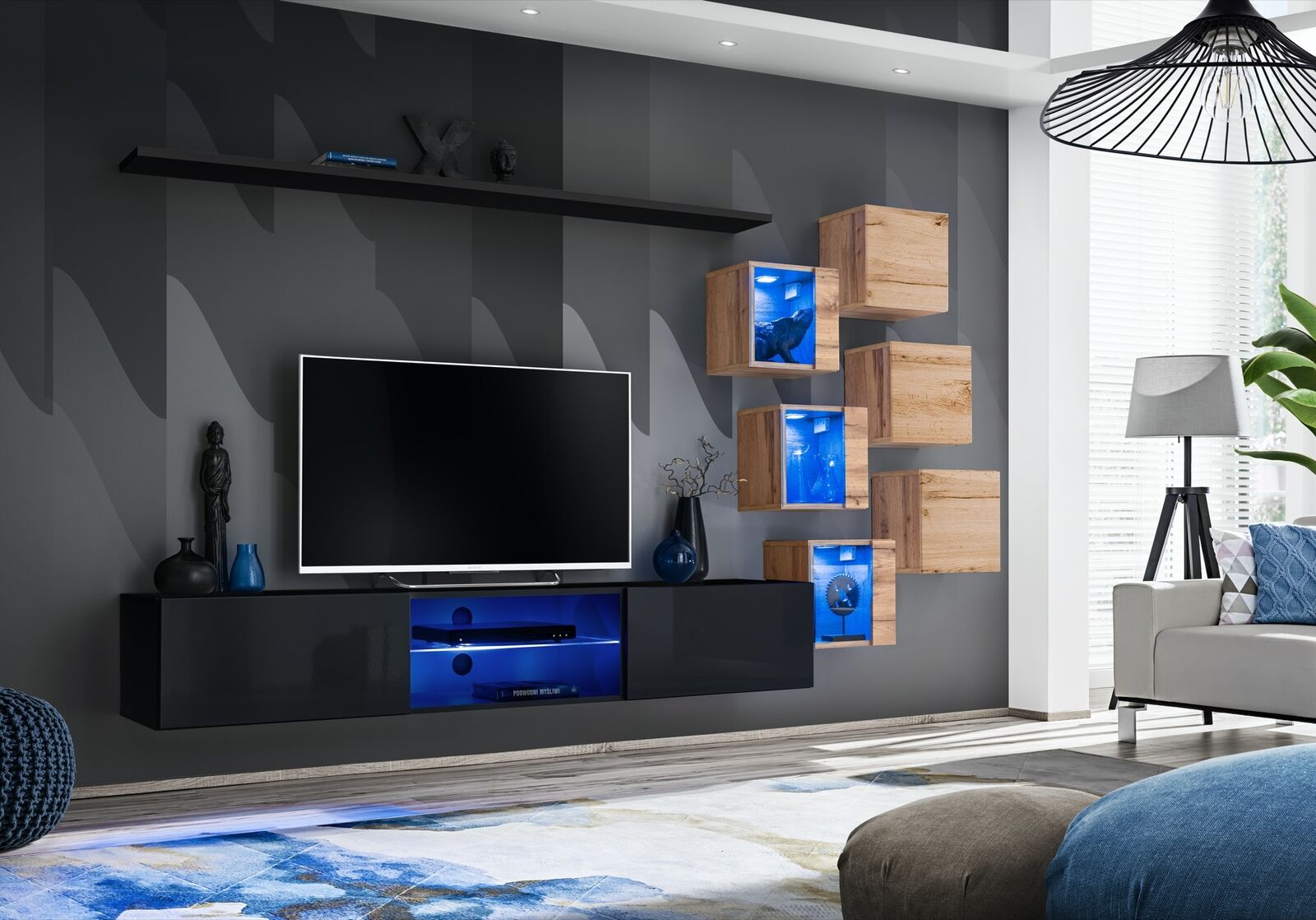 El Mueble de sala de estar de diseñador es la pieza perfecta para aquellos que buscan un toque moderno y funcional en su hogar. Con una estructura de madera resistente, este mueble ofrece un diseño elegante y contemporáneo que se adapta a cualquier espacio. Su soporte para TV integrado con dimensiones aproximadas de 180 x 30 x 40 cm proporciona un lugar seguro y elegante para tu televisor, mientras que los 6 armarios de pared de aproximadamente 30 x 30 x 25 cm ofrecen un amplio almacenamiento para tus objetos personales.