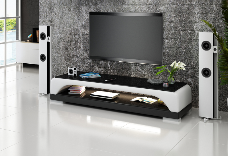 RTV Mueble de televisión de cuero y vidrio, mesa de televisor, mesa de diseñador y decoración.