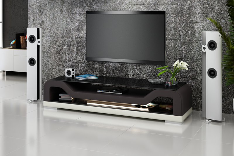 RTV Mueble de TV en cuero, mesa de vidrio, armario de decoración de televisión, mesa de diseño.