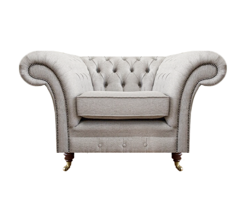 Sillón de lujo para sala de estar, muebles tapizados nuevos, gris, asiento de tela, Chesterfield.