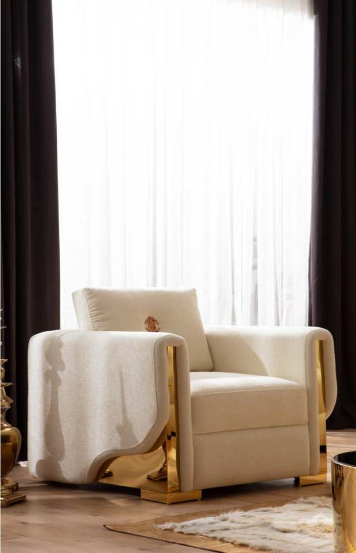 Diseño de sillón individual de tela para sala de estar Lounge de lujo en metal. Mueble de diseño de sofá.