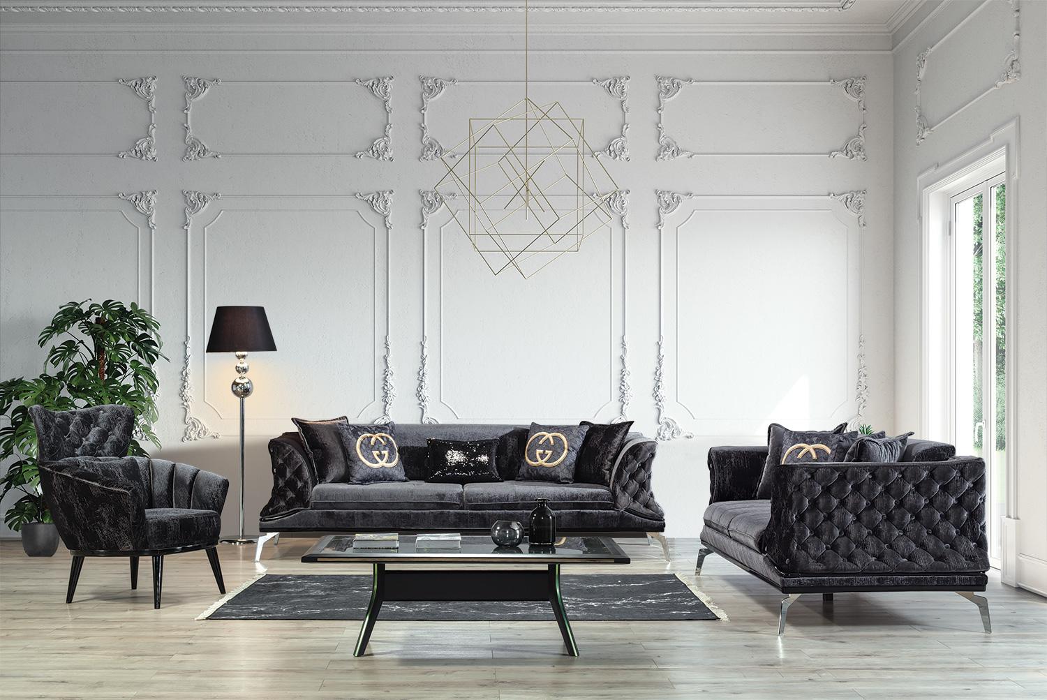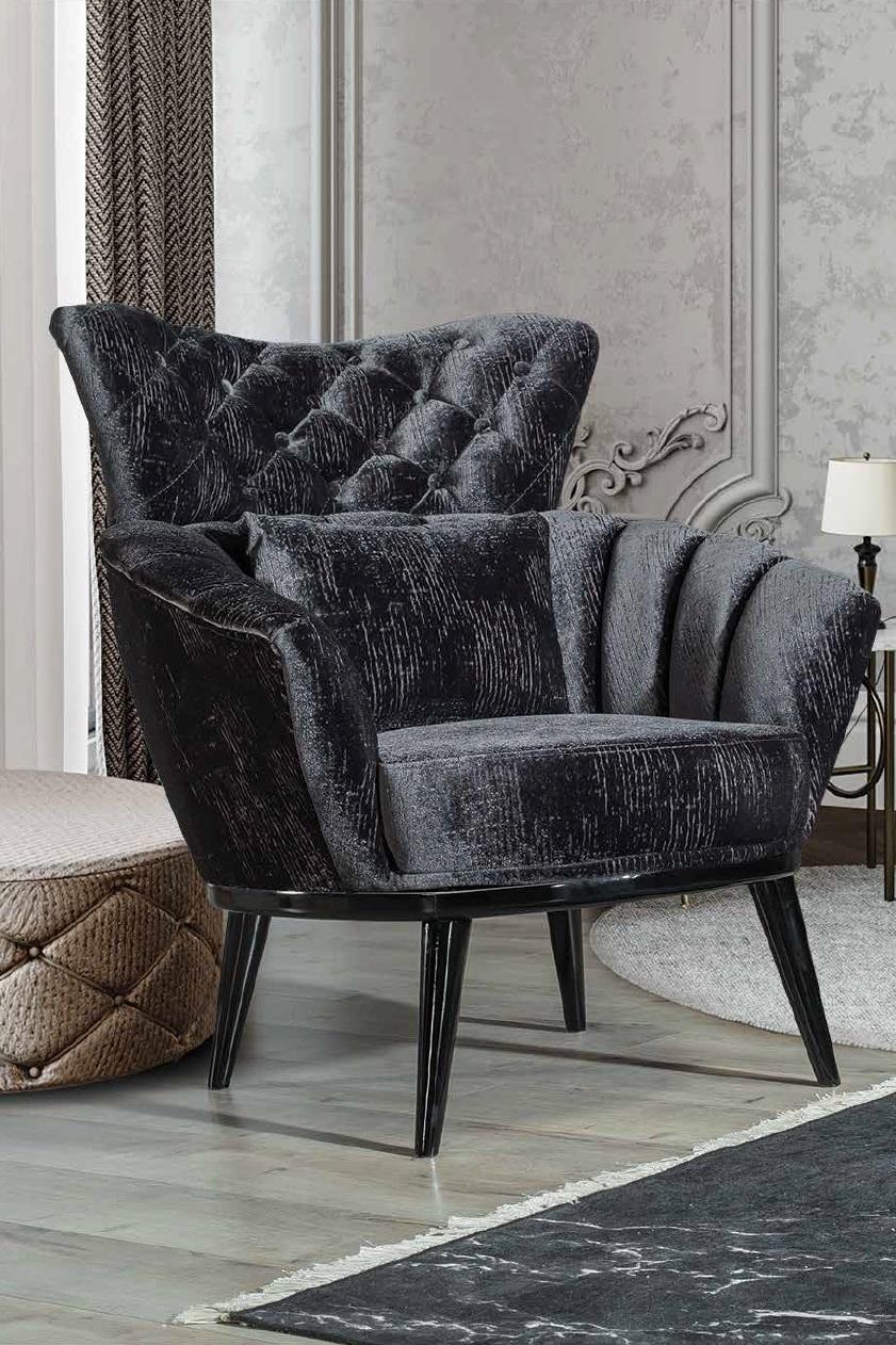 Mueble de diseño, sillón de diseño moderno, tela, salón negro.