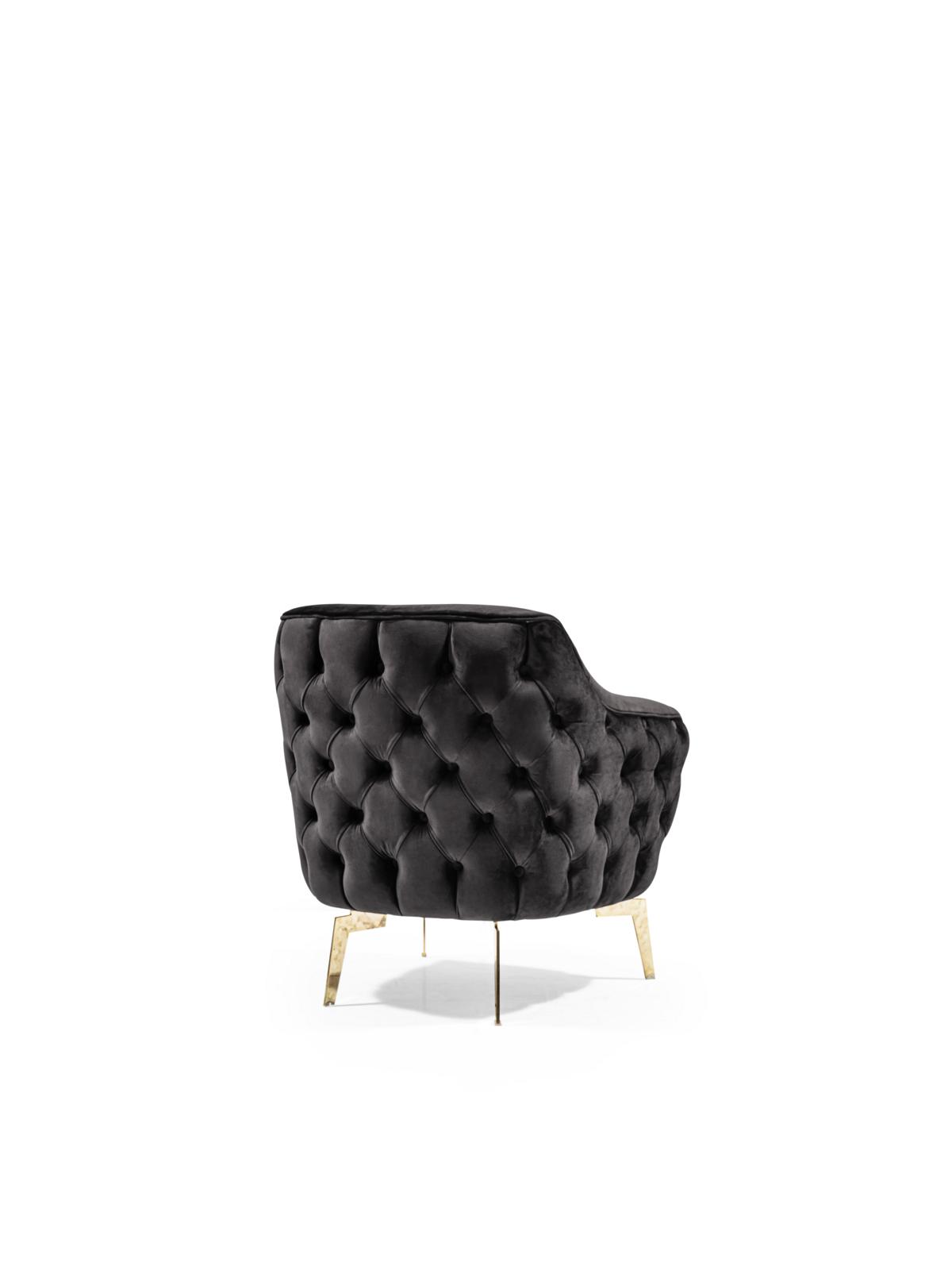 Sillón de sala, diseño acolchado, sofás modernos, textil nuevo, lujo negro.
