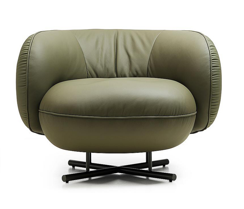 Sillón de una plaza de cuero sintético de lujo, lounge, acolchado, diseño gris.