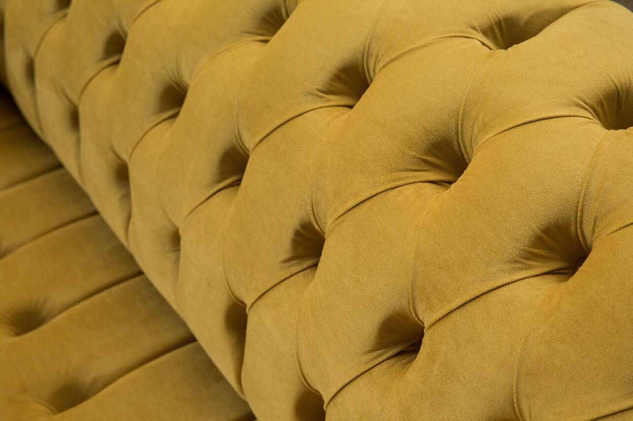Sofá Chesterfield Conjunto de muebles 2x de un asiento Set Sofá Amarillo Textil