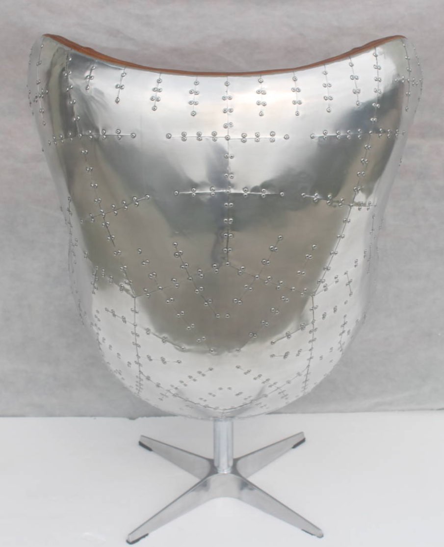 Silla de cuenco vintage de aluminio con cuero auténtico función de balanceo Silla huevo marrón.