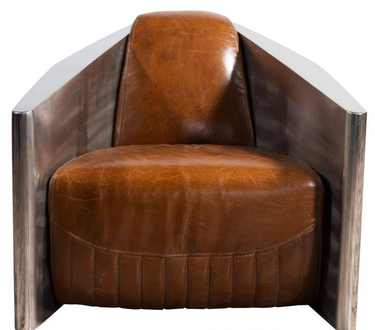 Silla de cuero vintage marrón de diseño retro de piel auténtica.