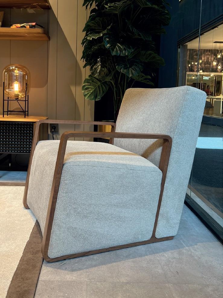 Sillón individual de tela gris nuevo de diseño acolchado.