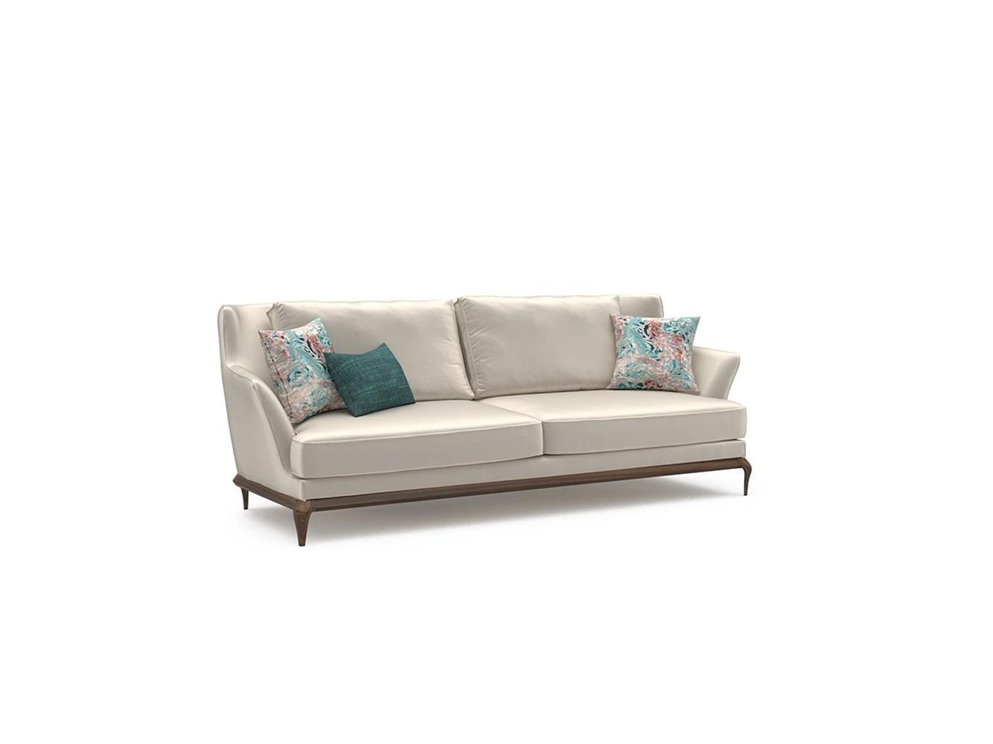 Sofá de tres plazas moderno completo blanco de tela para salón de diseño.