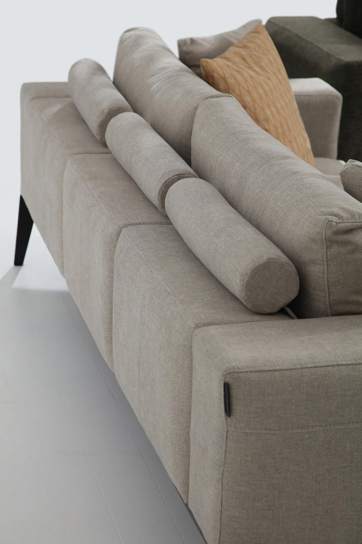 Sofá moderno de lujo de tres plazas en gris con sillón a juego.
