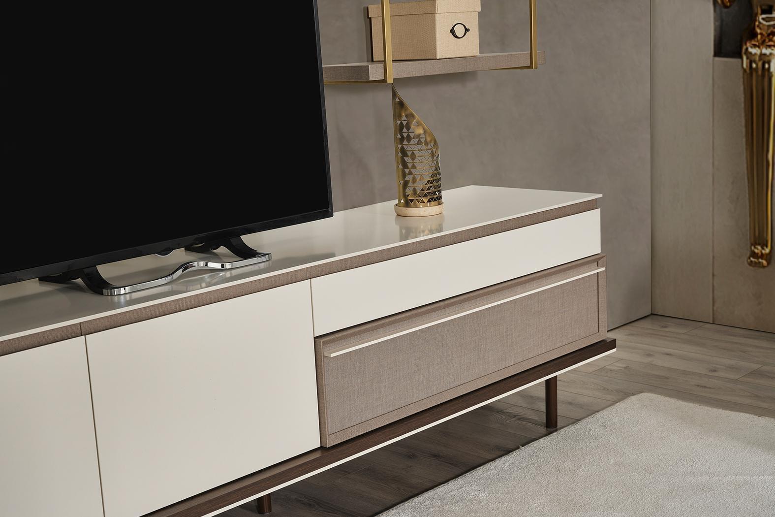 Sala de estar blanca Conjunto de muebles de diseñador Soporte de TV de lujo Vitrina LED de madera Estante