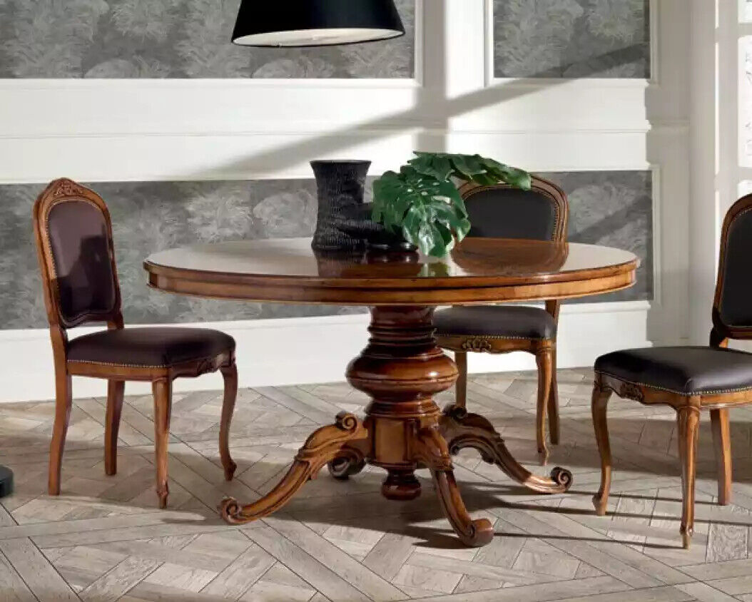 Juego completo de mesa de comedor 4 sillas Set de comedor Grupo de esencias Mesa de madera Nueva 5 piezas es el conjunto perfecto para tu comedor. Con un diseño elegante y funcional, este conjunto incluye una mesa de comedor redonda de aproximadamente 150 cm de diámetro y 79 cm de altura, acompañada por cuatro sillas de aproximadamente 50 x 55 x 102 cm cada una. El color de la madera mostrada le brinda un aspecto clásico y versátil que se adaptará a cualquier estilo de decoración. Fabricado en madera de alta calidad, este juego de comedor garantiza durabilidad y resistencia para su uso diario.
