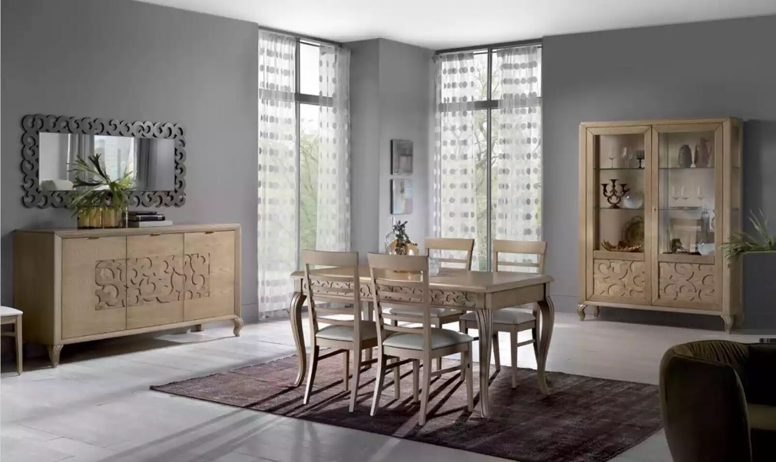 Este conjunto de comedor no solo es visualmente atractivo, sino que también ofrece funcionalidad y comodidad para tus reuniones familiares o cenas con amigos. La mesa espaciosa permite disfrutar de deliciosas comidas con comodidad, mientras que las sillas acolchadas brindan confort durante largas sobremesas. El aparador y la vitrina ofrecen espacio de almacenamiento adicional para vajilla, cristalería y otros objetos decorativos, manteniendo tu comedor organizado. Además, el espejo añade profundidad y luminosidad al entorno, creando un ambiente acogedor y elegante. Con este conjunto, tu comedor se convertirá en el lugar favorito de tu hogar para compartir momentos especiales con tus seres queridos. ¡Renueva tu espacio con este hermoso conjunto de muebles de madera!