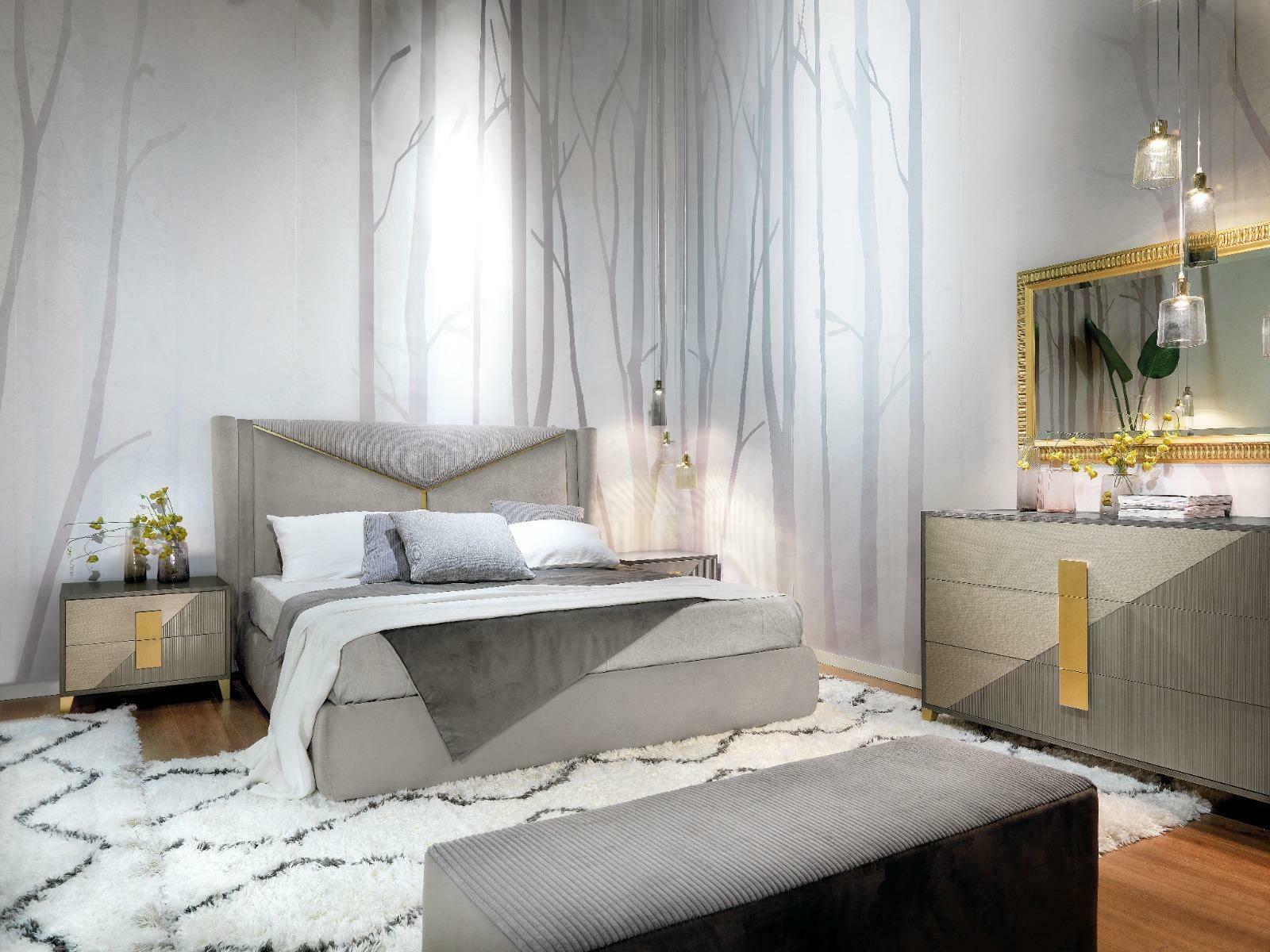Dormitorio cama 2x mesita de noche Juego de 3 piezas Cama tapizada Muebles italianos nuevos.