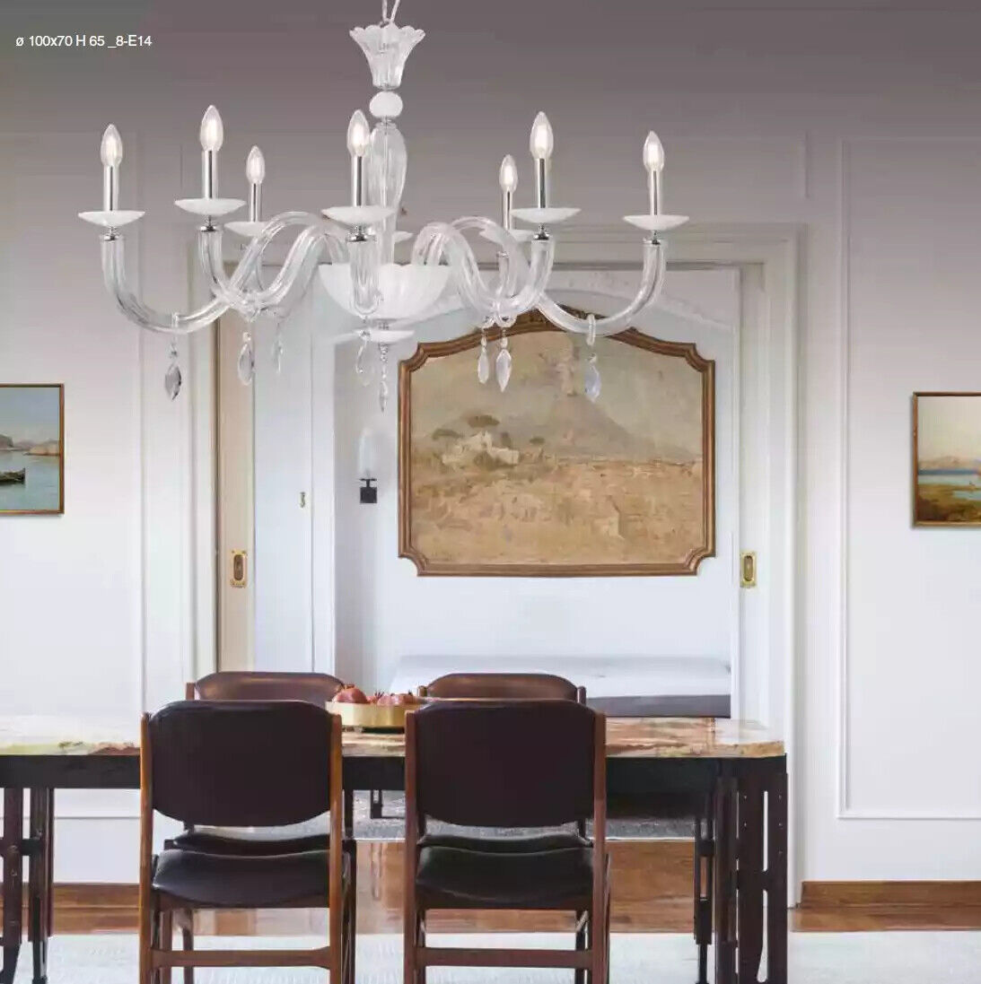 Lámpara de araña Lámpara de techo Lámpara de techo Lámpara de araña de diseñador Lámpara: Estiliza tu espacio con esta elegante y moderna lámpara de techo. Con un diseño ovalado en color blanco, el modelo Lara 8 agrega un toque de sofisticación a cualquier habitación. Con un tamaño de 100 x 70 x 65 cm, esta lámpara está fabricada con materiales de alta calidad, combinando metal y cristal real para un acabado impecable. Con 8 lámparas E14 incluidas, este accesorio de iluminación es perfecto para espacios amplios y áreas de reunión.