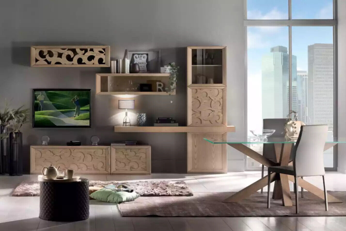 Con una longitud de aproximadamente 305 cm, una altura de 194 cm y un ancho de 55 cm, este mueble ofrece tanto estilo como funcionalidad. El color como se muestra encaja con una amplia gama de decoraciones, y el material de madera le otorga una sensación de calidad y calidez. Ya sea para organizar tu televisor y sistema de entretenimiento o para mostrar tus piezas de arte favoritas, el Mueble de salón de madera estilo clásico italiano será el centro de atención de tu espacio de estar.