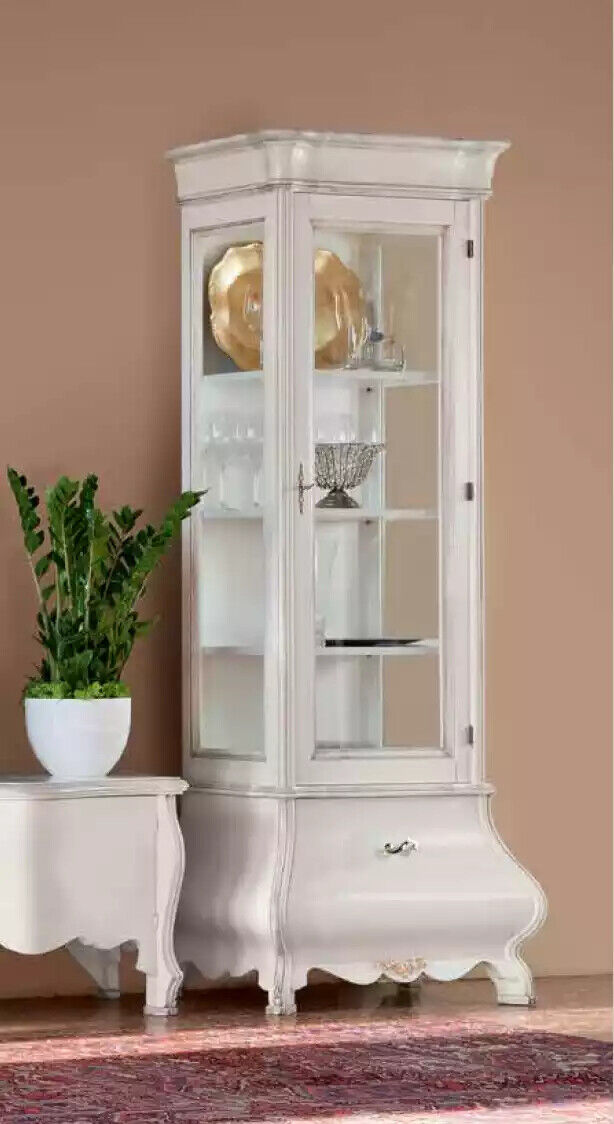 Mueble de salón de lujo blanco, 2 vitrinas, soporte de TV clásico.