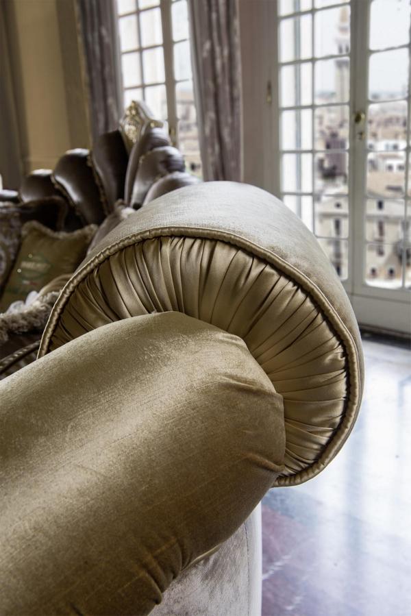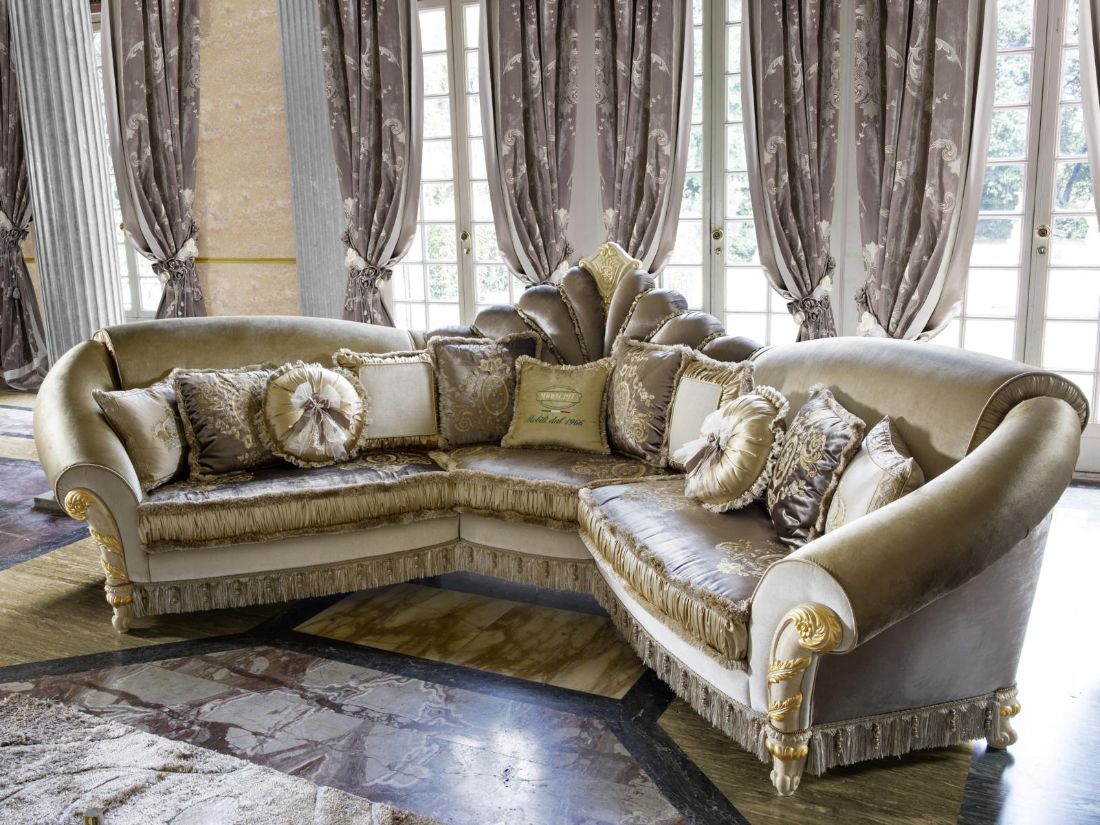 Sofá esquinero en forma de L, sofá acolchado de tela de diseño de lujo para la sala de estar.