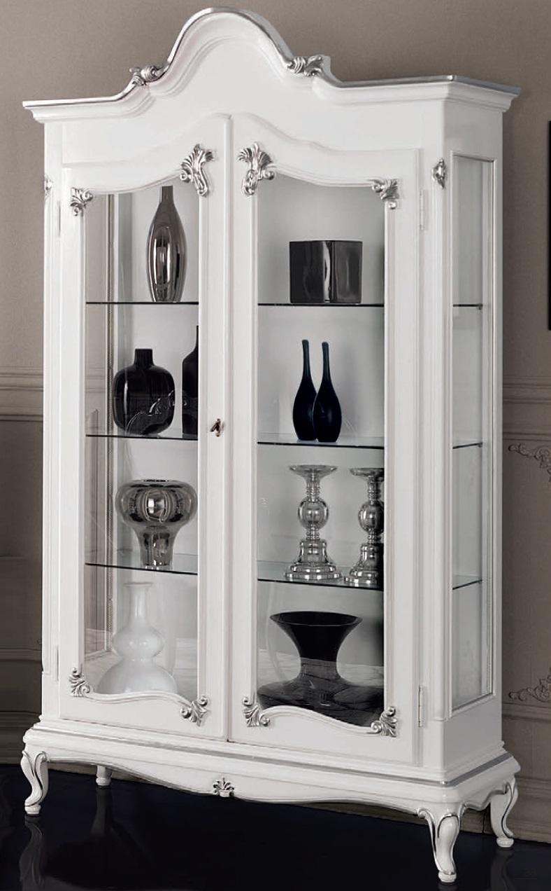 Vitrine Blanca Armario de vidrio Diseño Armario clásico de lujo de madera Nuevo
