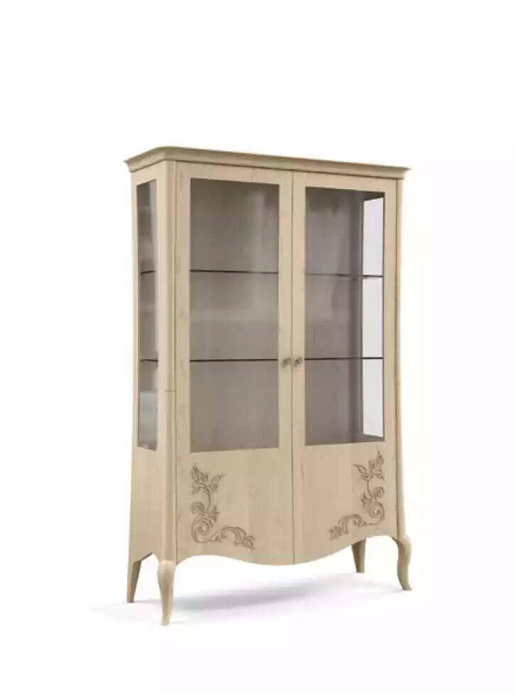 Vitrina de madera de lujo. Aparador clásico de diseño de muebles italianos en color beige es un elegante mueble que agrega un toque de sofisticación a cualquier espacio. Con dimensiones aproximadas de 138 x 48 x 212 cm, esta vitrina es ideal para lucir tus objetos de valor o decorativos. Fabricada en madera de alta calidad, este mueble garantiza durabilidad y resistencia. El color beige suave y neutral brinda un aspecto clásico y atemporal que se adapta a cualquier estilo de decoración.