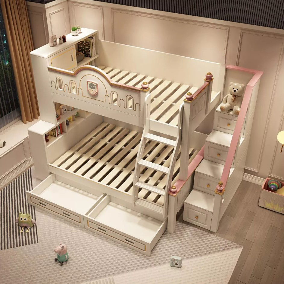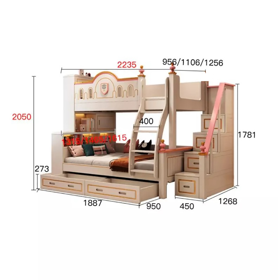 La Cama infantil litera cama juvenil cama alta diseño moderno cama habitación infantil camas es una solución versátil y funcional para maximizar el espacio en la habitación de tus hijos. Con un diseño moderno y elegante, esta litera ofrece una cama superior e inferior, ambas equipadas con cómodos colchones para un descanso placentero. Las dimensiones generosas de la cama garantizan amplitud y comodidad, con la posibilidad de elegir el color que mejor se adapte a la decoración del ambiente.