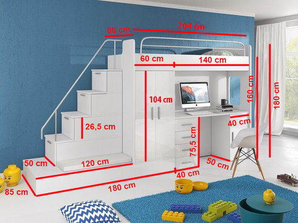 La litera litera cama armario juvenil armario escritorio es la solución perfecta para maximizar el espacio en una habitación juvenil. Con un diseño funcional y versátil, esta combinación de muebles ofrece múltiples usos en un solo conjunto. Elaborada en madera de alta calidad, esta pieza está diseñada para brindar durabilidad y estilo a tu hogar. Las dimensiones compactas de la litera y el armario junto con el escritorio integrado crean un espacio multifuncional ideal para estudiar, dormir y almacenar, todo en un solo lugar.