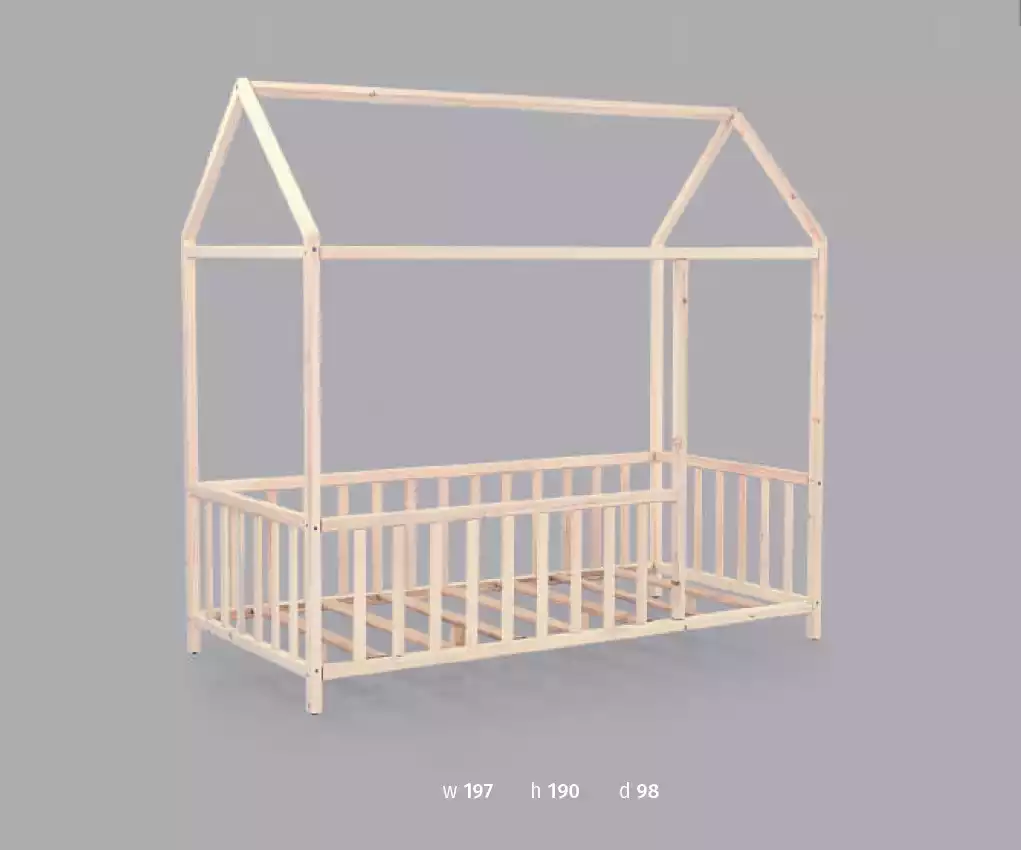 La cama ofrece una superficie de apoyo del colchón de aproximadamente 90 x 190 cm, lo que la hace compatible con colchones estándar. Además, su innovador diseño no requiere la inclusión de cojines, lo que permite personalizarla de acuerdo a los gustos de su hijo/a. Esta cama es perfecta para crear un rincón de lectura, un espacio de juego o simplemente un refugio encantador para descansar. Su estructura baja hace que sea fácilmente accesible para los niños, fomentando su independencia al entrar y salir de la cama. Ideal para hogares que desean combinar funcionalidad y estilo en un mueble único, la Cama baja con dosel transforma cualquier dormitorio infantil en un lugar mágico donde los sueños pueden volar.