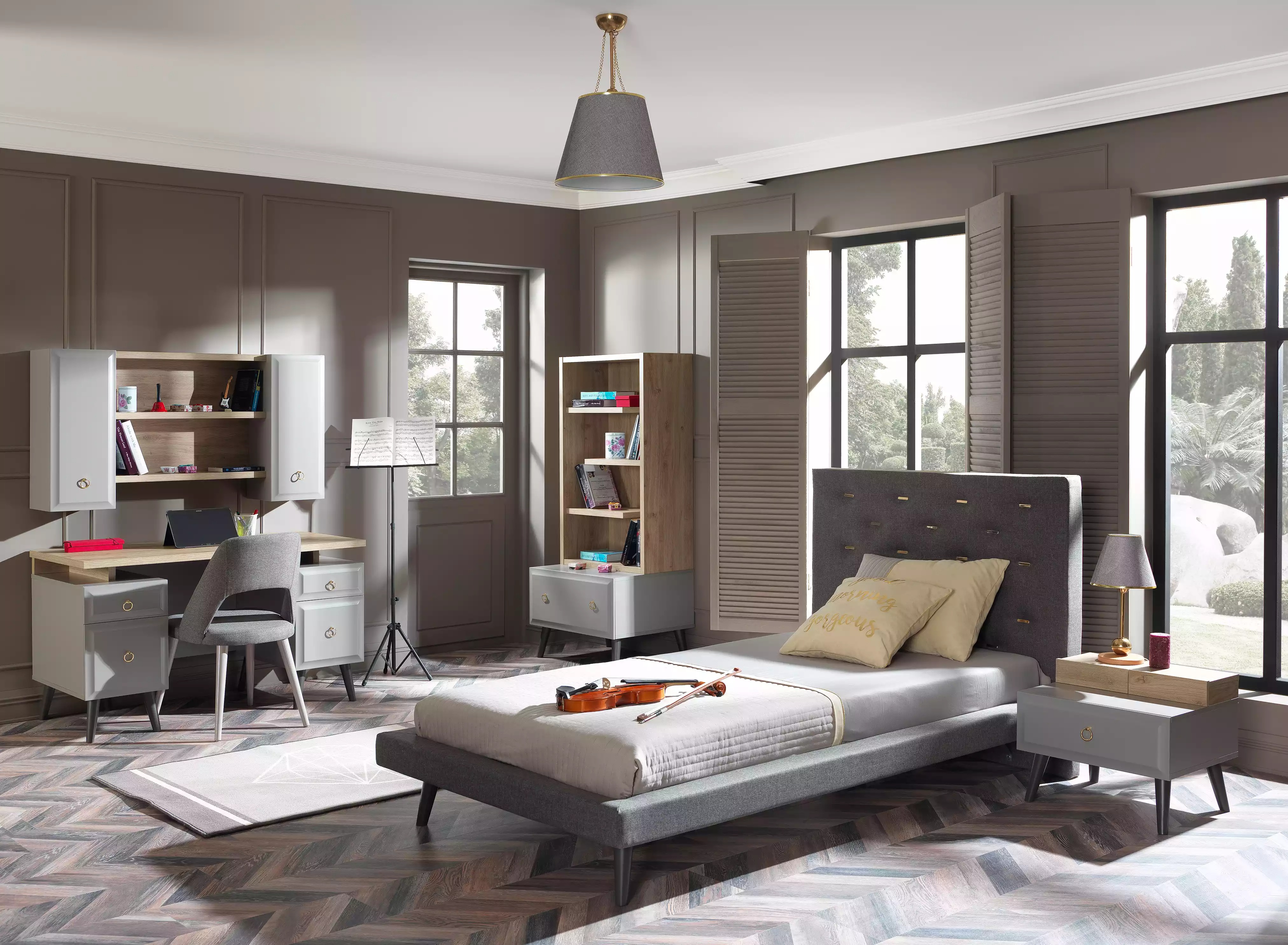 Cama juvenil completa muebles infantiles habitación infantil cama de madera gris set de 5 piezas
